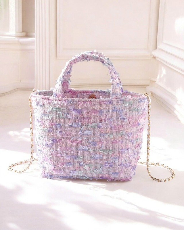 春色 ツイード ラベンダー ミニトート ショルダー対応 2way ミロス ジュエリーツイード お出掛け Dカン付き ご褒美