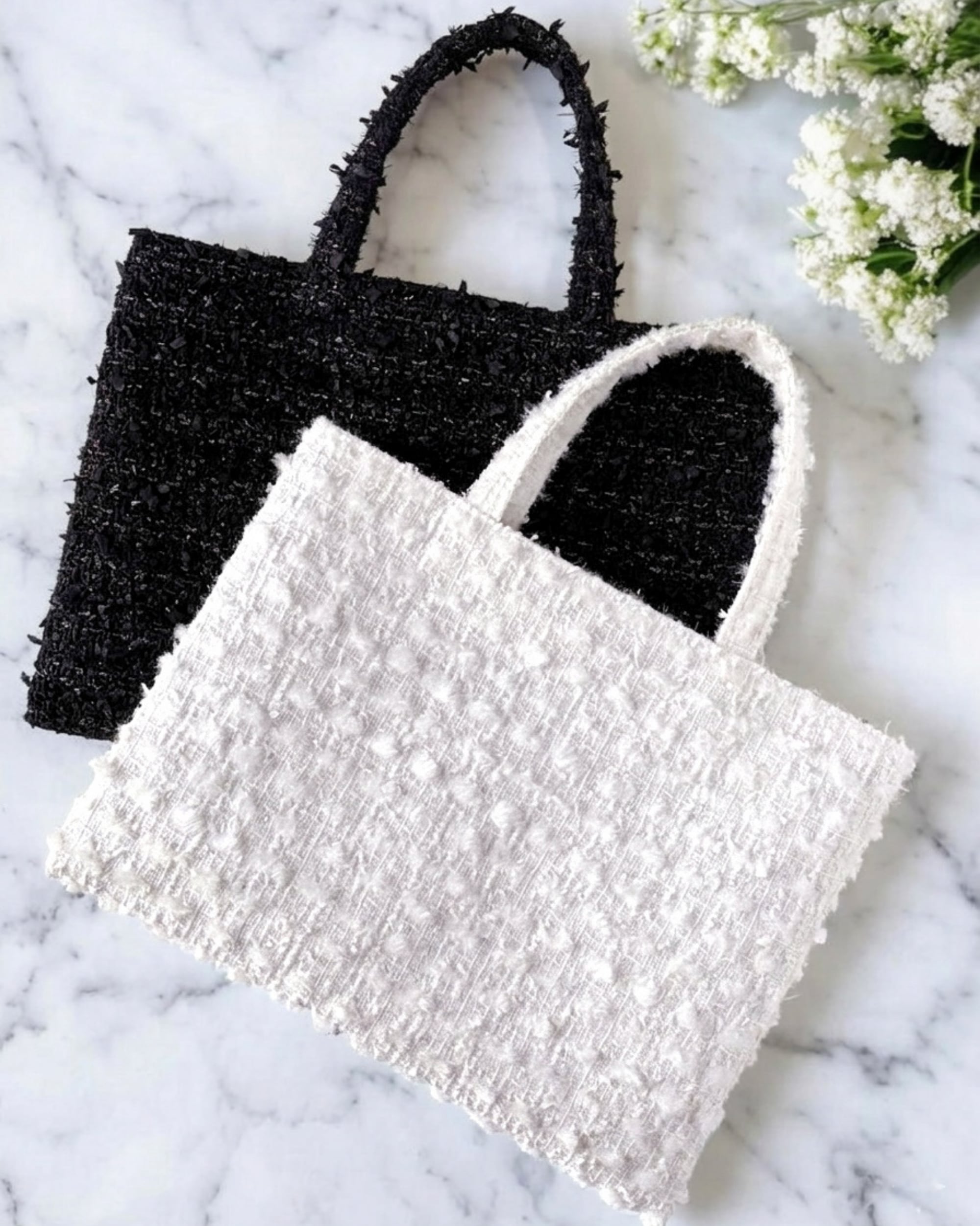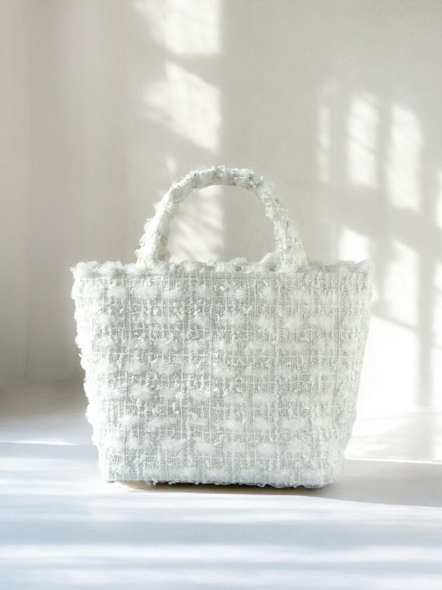 ホワイト ツイード ミニトート ショルダー対応 2way ミロス ジュエリーツイード お出掛け 底鋲・Dカン付き ご褒美
