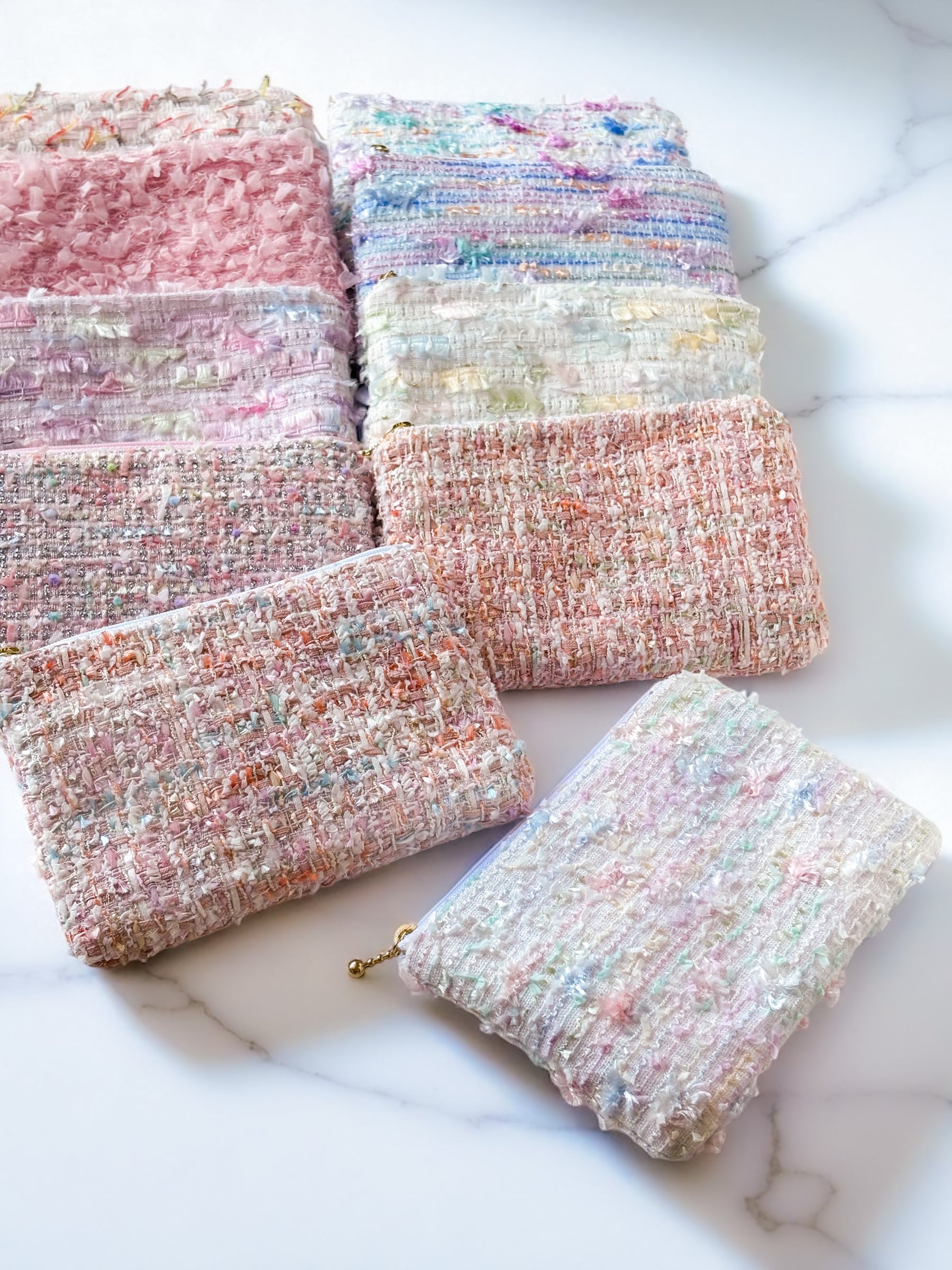 ミニフラットポーチ ピンク・ブルー・ パステル チェック 化粧ポーチ Miros マリア ツイード 新年 お出掛け プレゼントに♡
