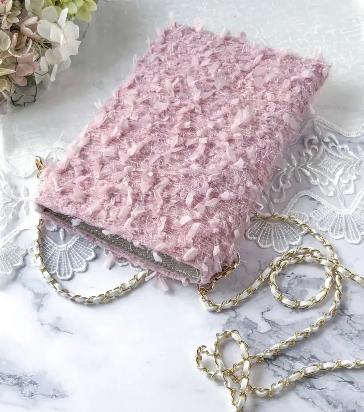 SAKURA ピンク スマホポシェット ツイード チェーン ご褒美 クリスマスプレゼント