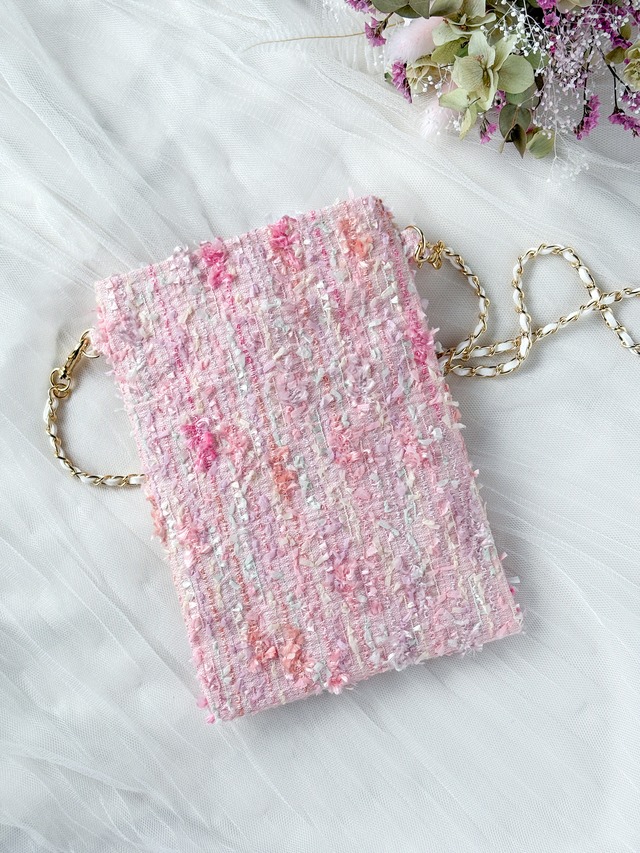 ピンク ミックス スマホポシェット ツイード 春のお出かけ ご褒美 プレゼント♡