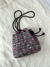 ミニ巾着バッグ 黒×ピンク ツイードバッグ・お出掛け・ご褒美 底鋲付き