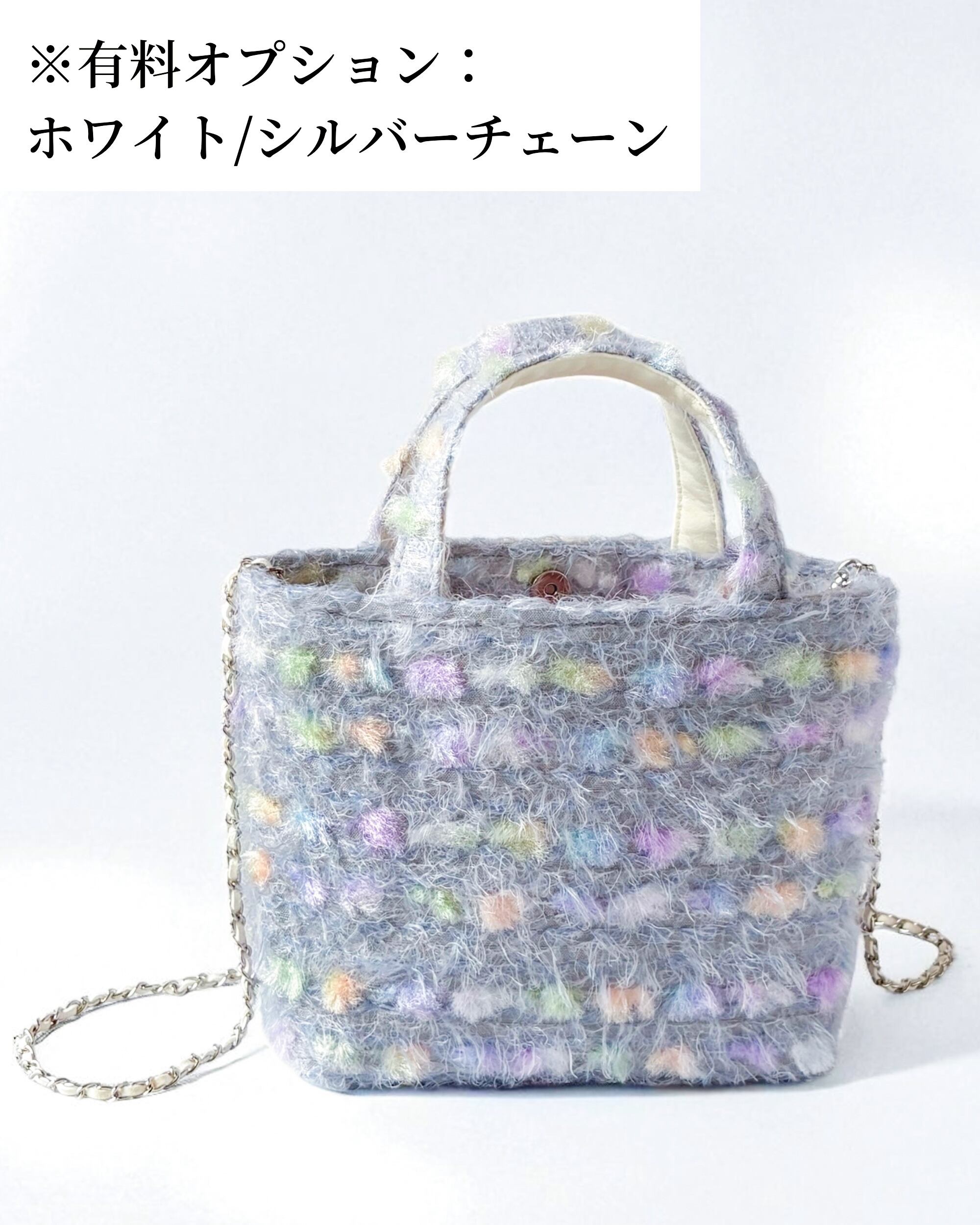 くすみブルー ミニトート ふんわりツイードバッグ ブルーグレー秋冬バッグ ツイード お出掛け 軽量 ご褒美 プレゼントにも♡