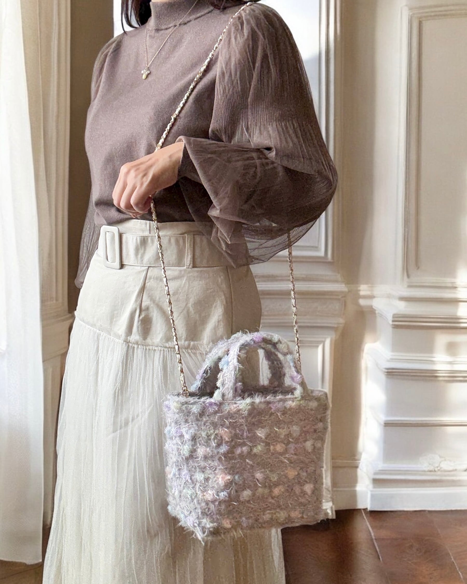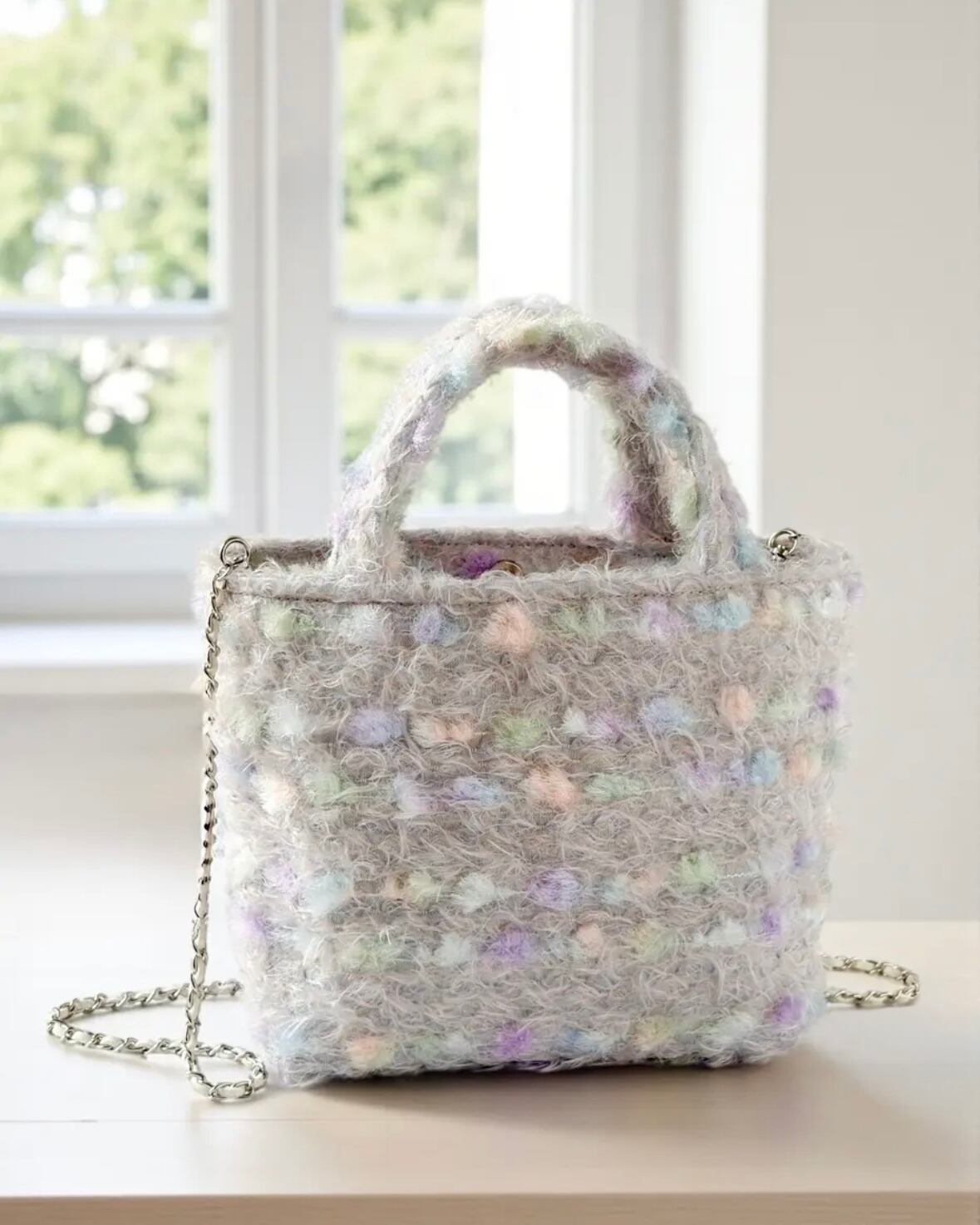 グレージュ ミニトート ふんわりツイードバッグ ブルーグレー秋冬バッグ ツイード お出掛け 軽量 ご褒美 プレゼントにも♡
