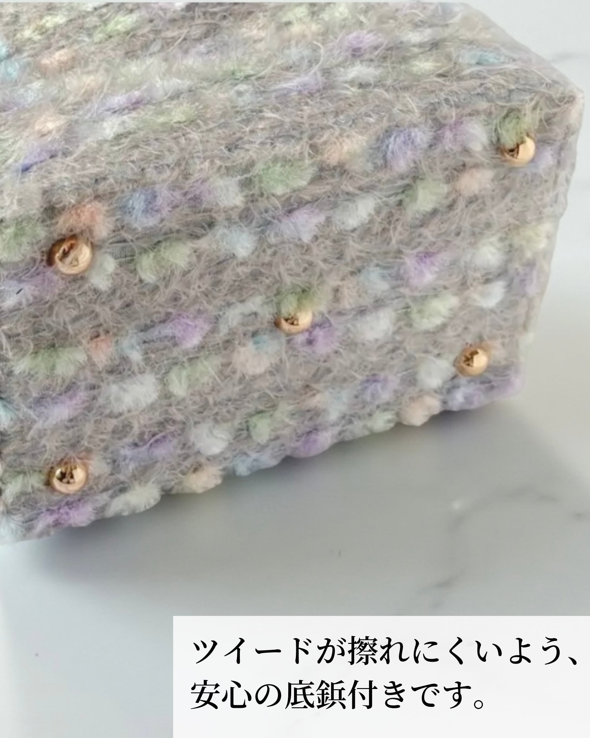 グレージュ マチ広め トートバッグ ふわもこ ツイード 底鋲付き ご褒美 プレゼントに♡
