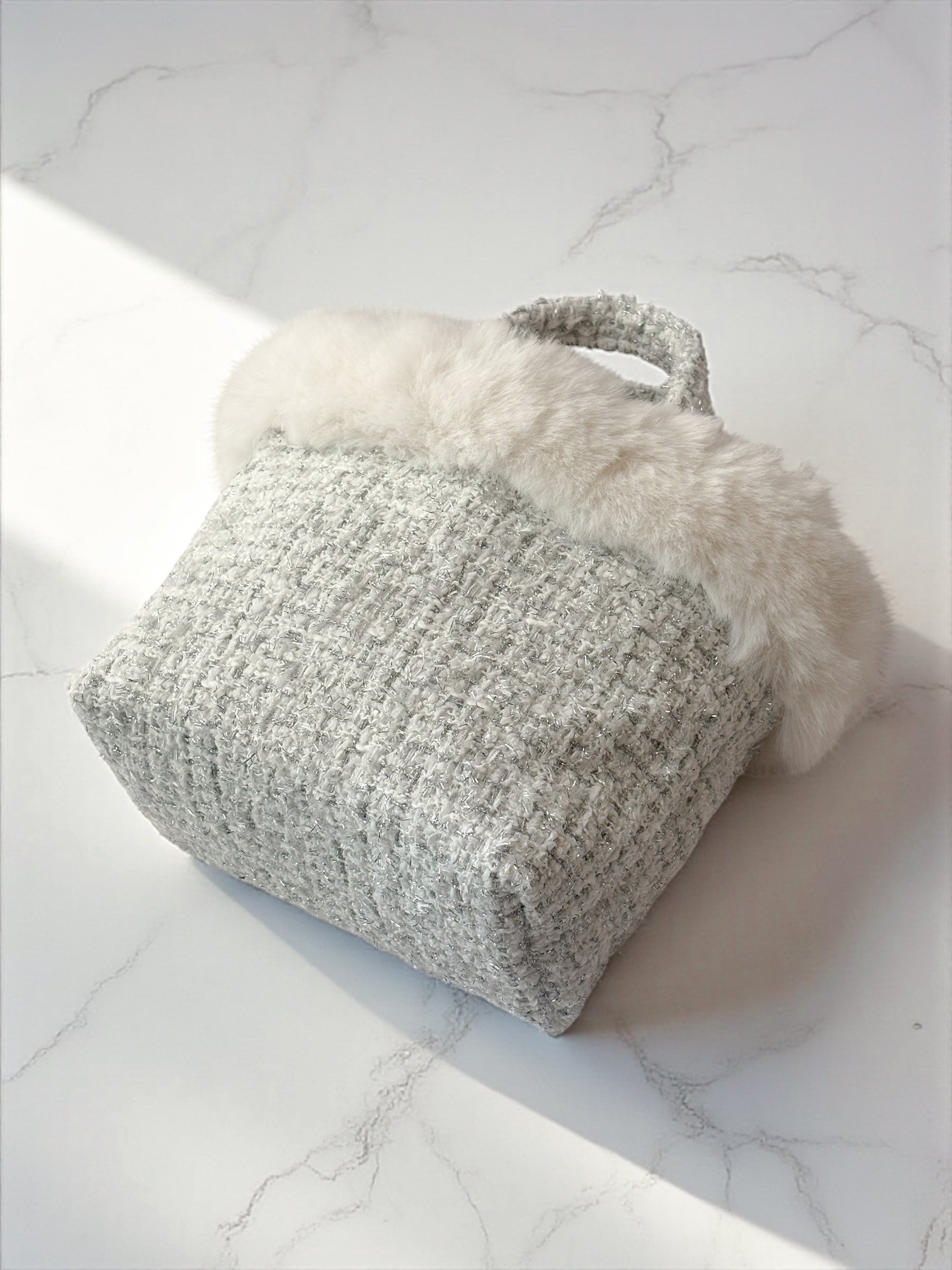 白銀 ×ファー ミニトート ホワイトツイード ファーバッグ 冬バッグ Dカン付き ご褒美 クリスマスプレゼント♡