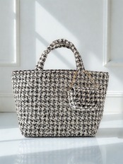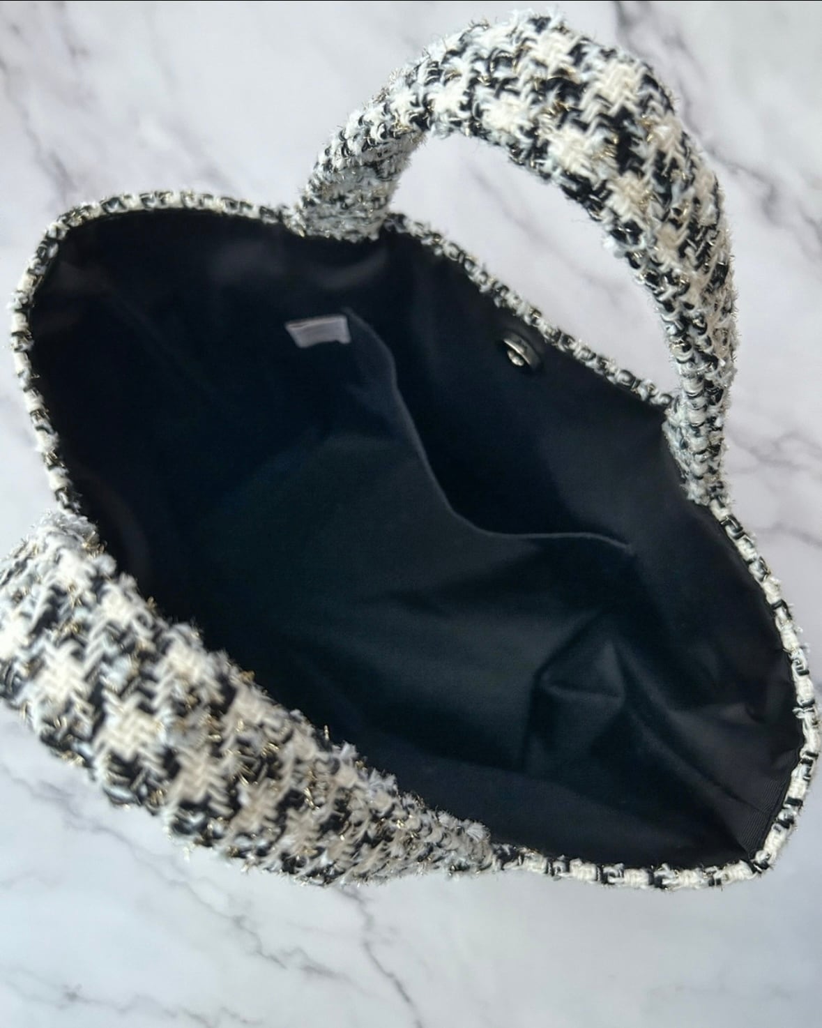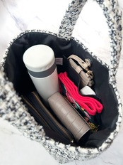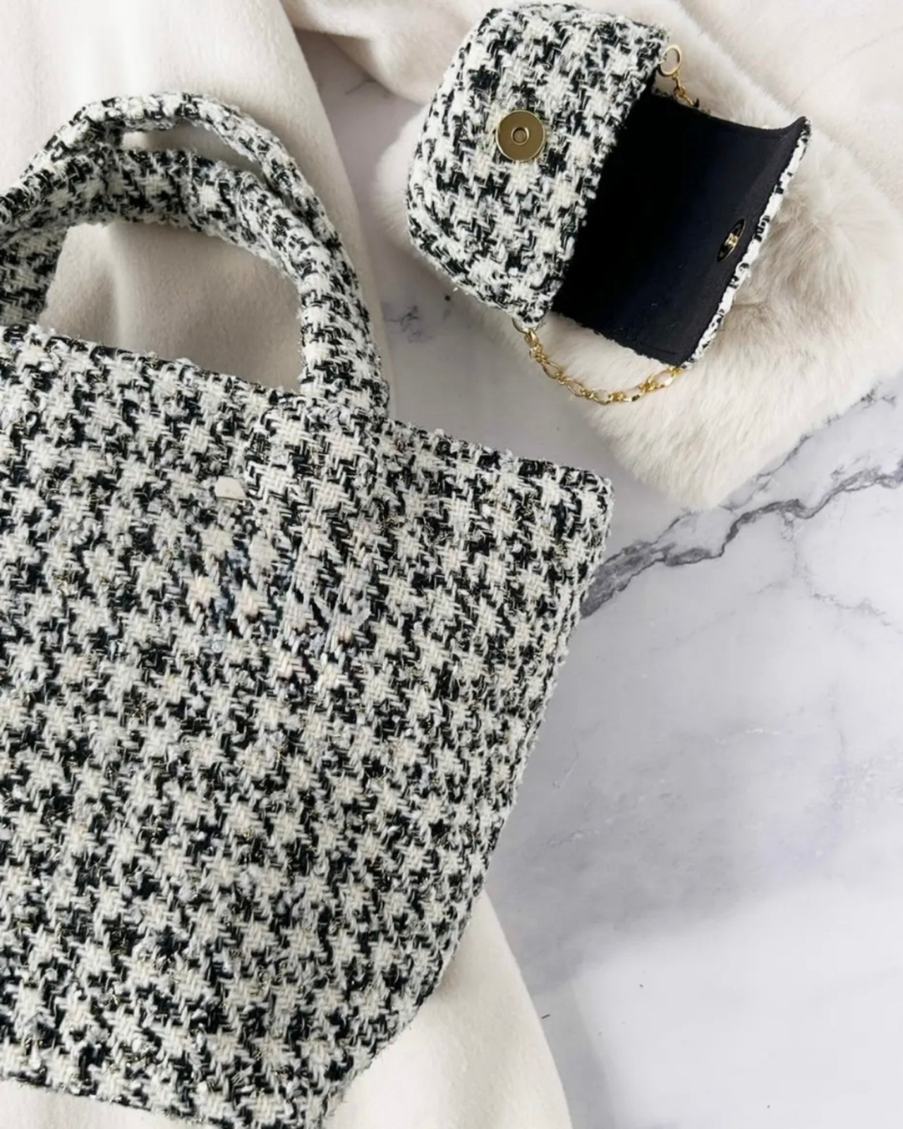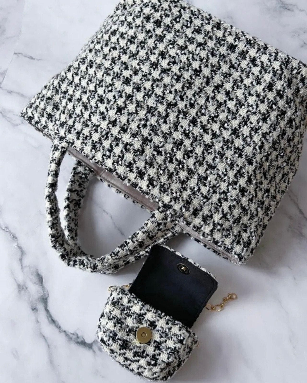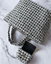 モノトーン千鳥格子ツイードのマチ広めトート。(AirPodsケース付き)
