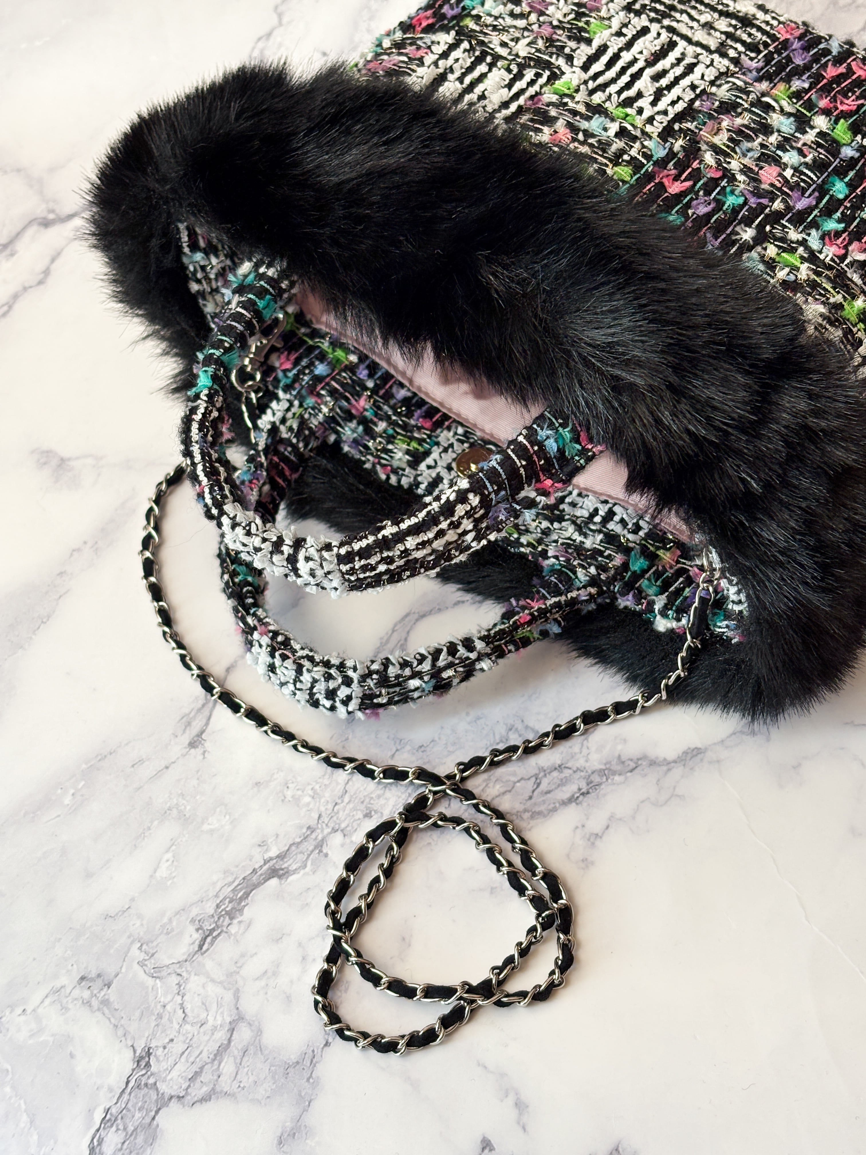 ブラック×カラーミックス ファーミニトート ジュエリーツイード デイリー お出掛けクリスマス ご褒美 プレゼント