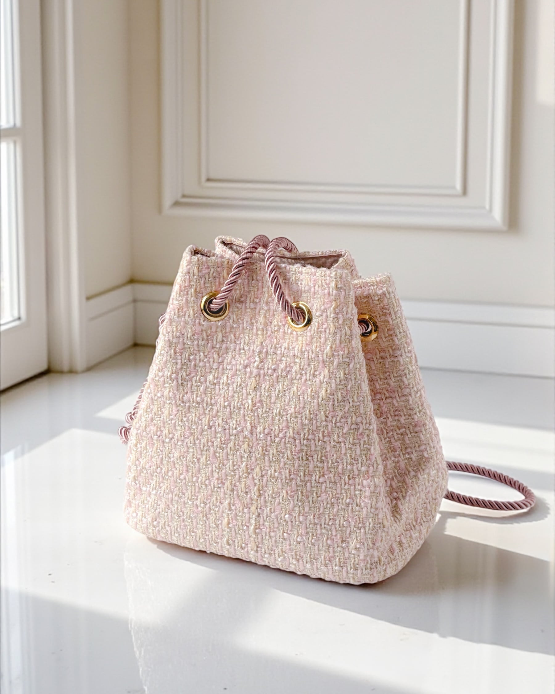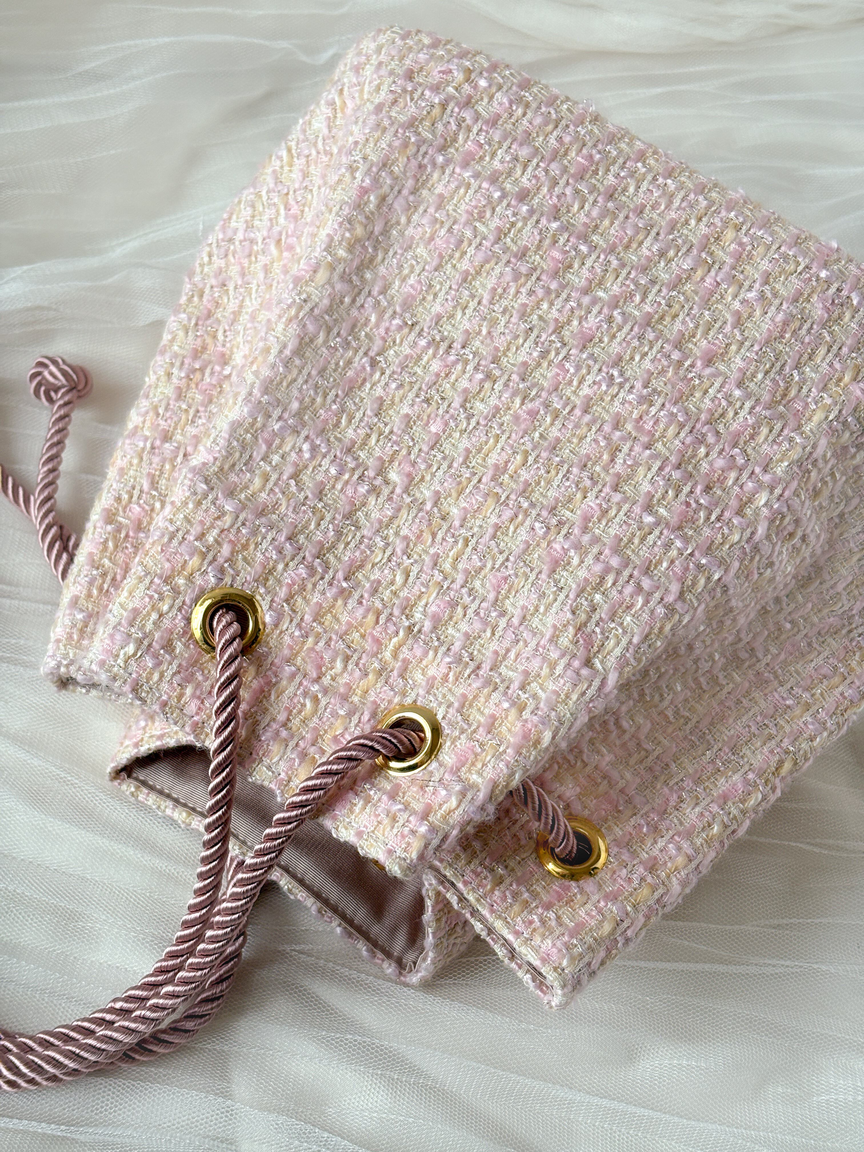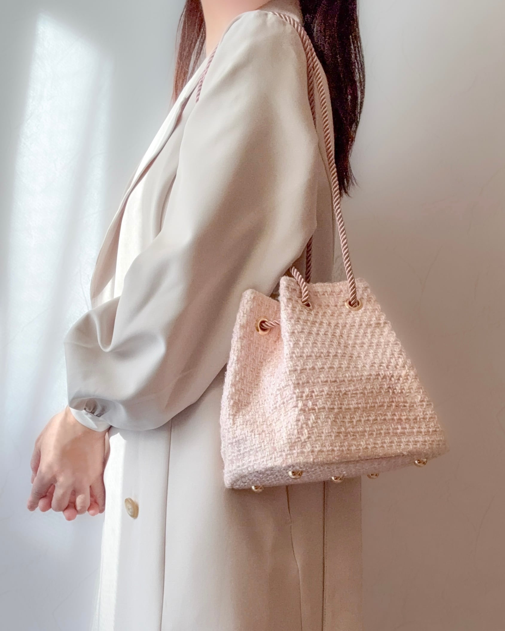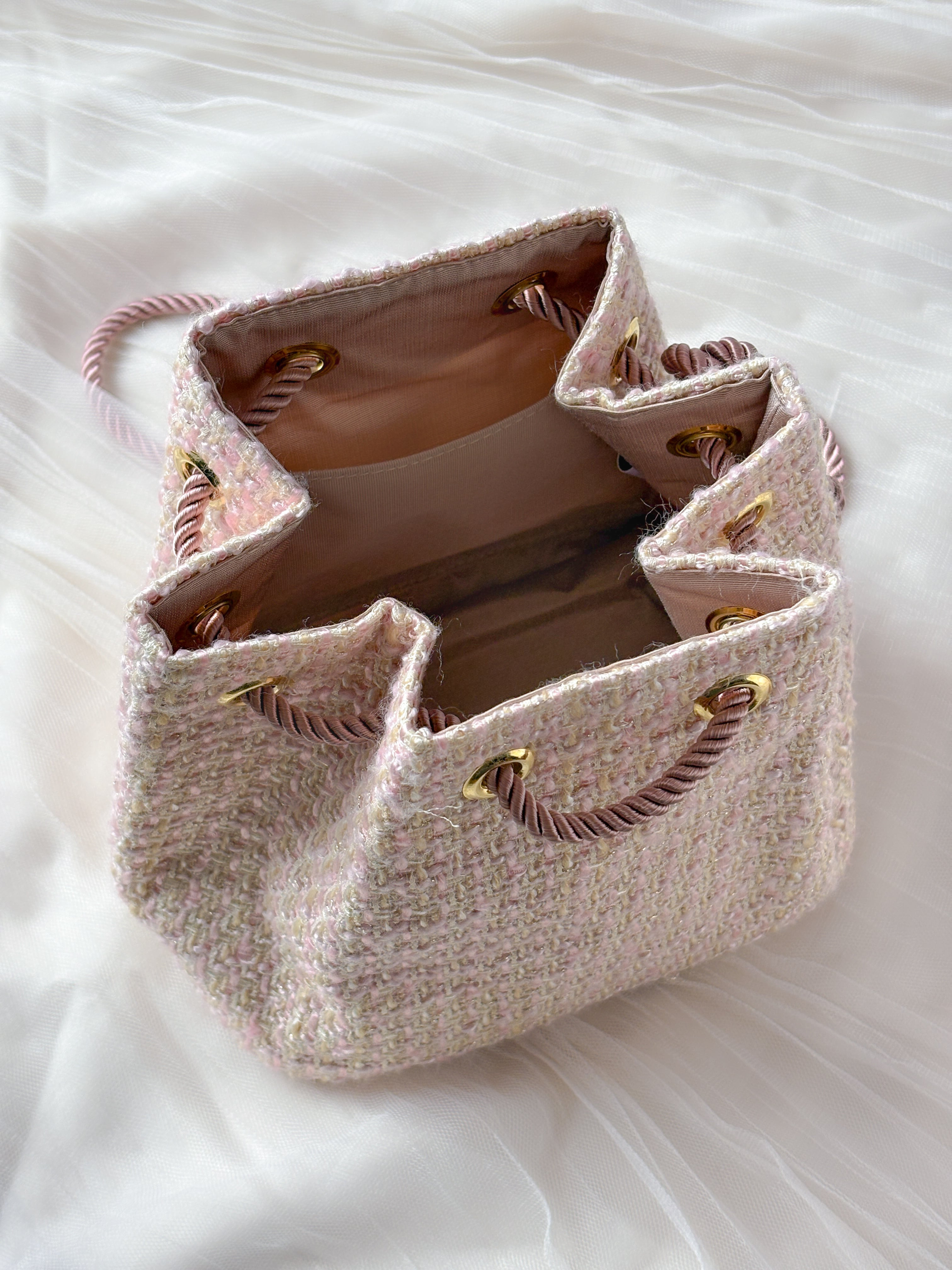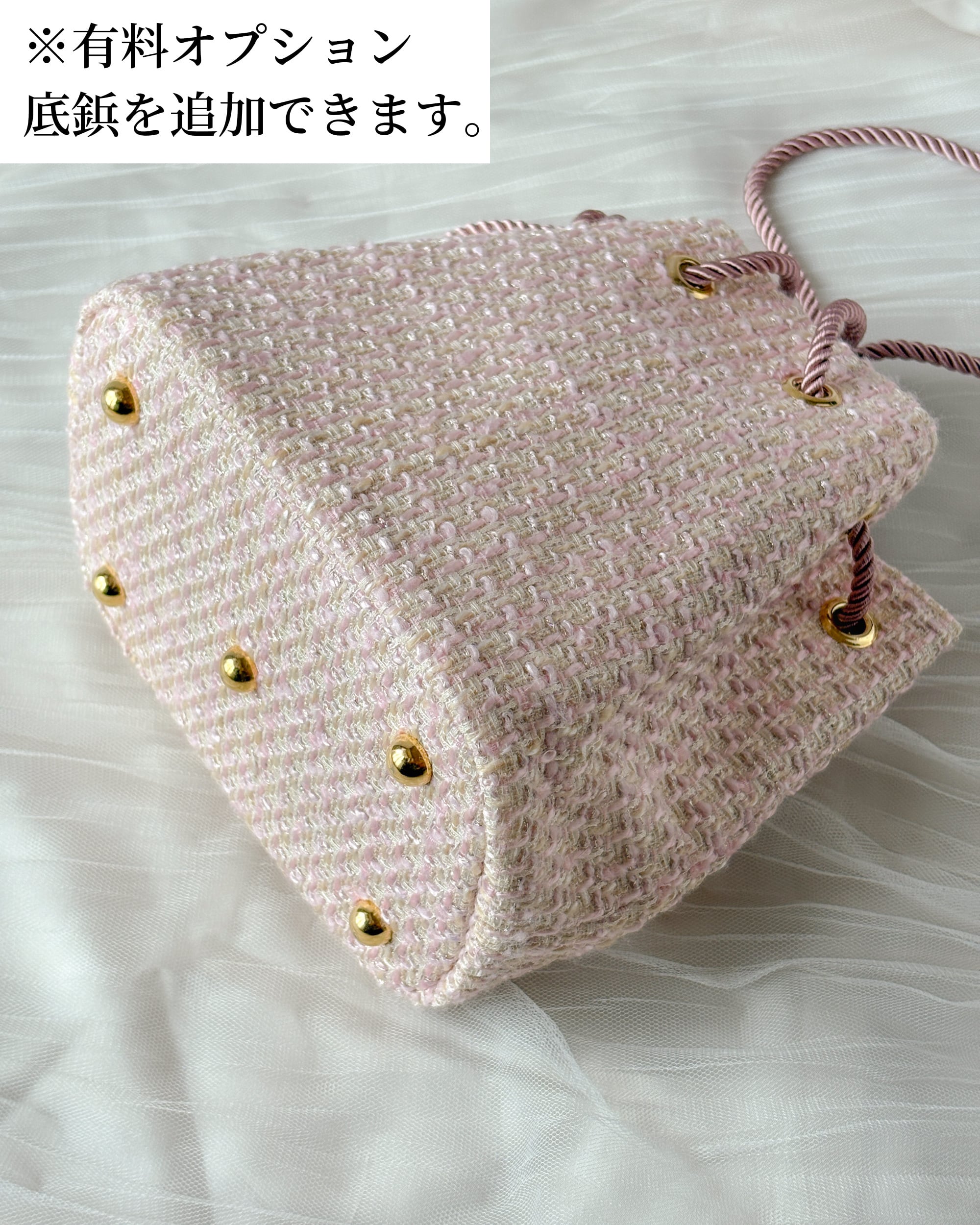 ミニ巾着バッグ ペールピンク ツイード お出掛け・ご褒美・プレゼントに