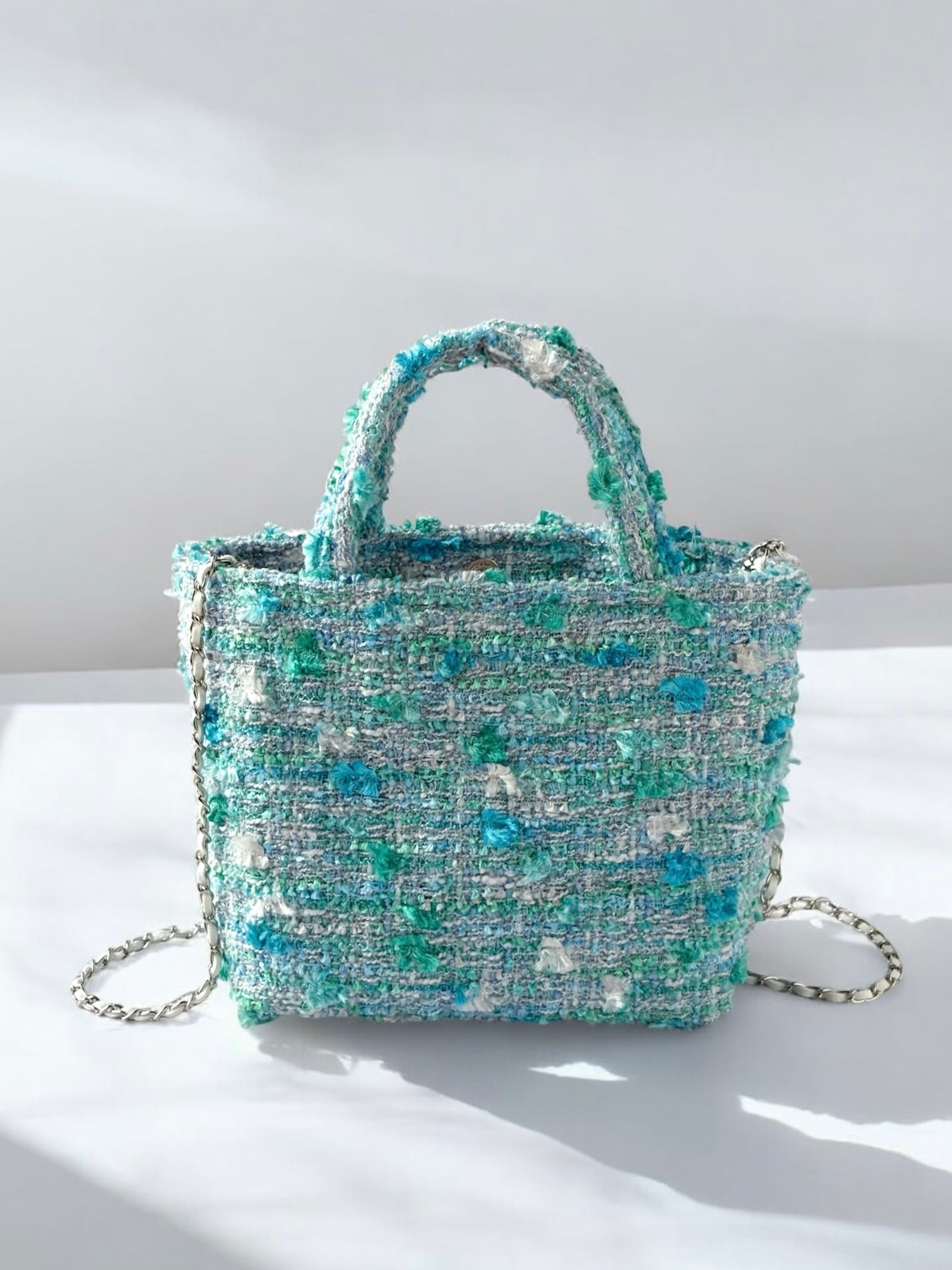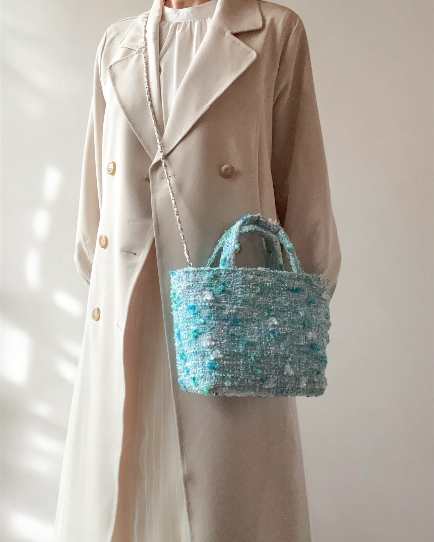 ブルーグリーン ミニトート Miros ツイード 尾州 お出掛け 軽量 ご褒美 プレゼント