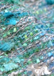 ブルーグリーンの色糸が静かに重なり合い、