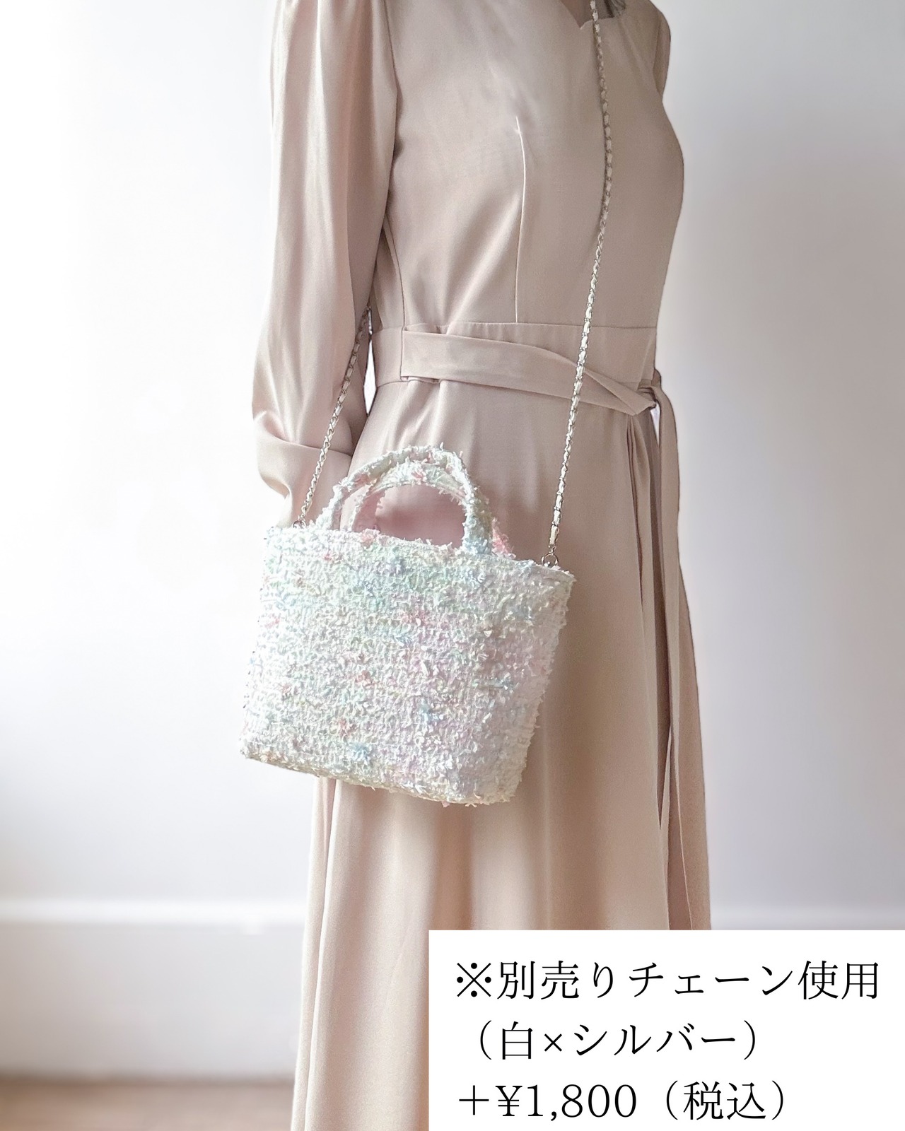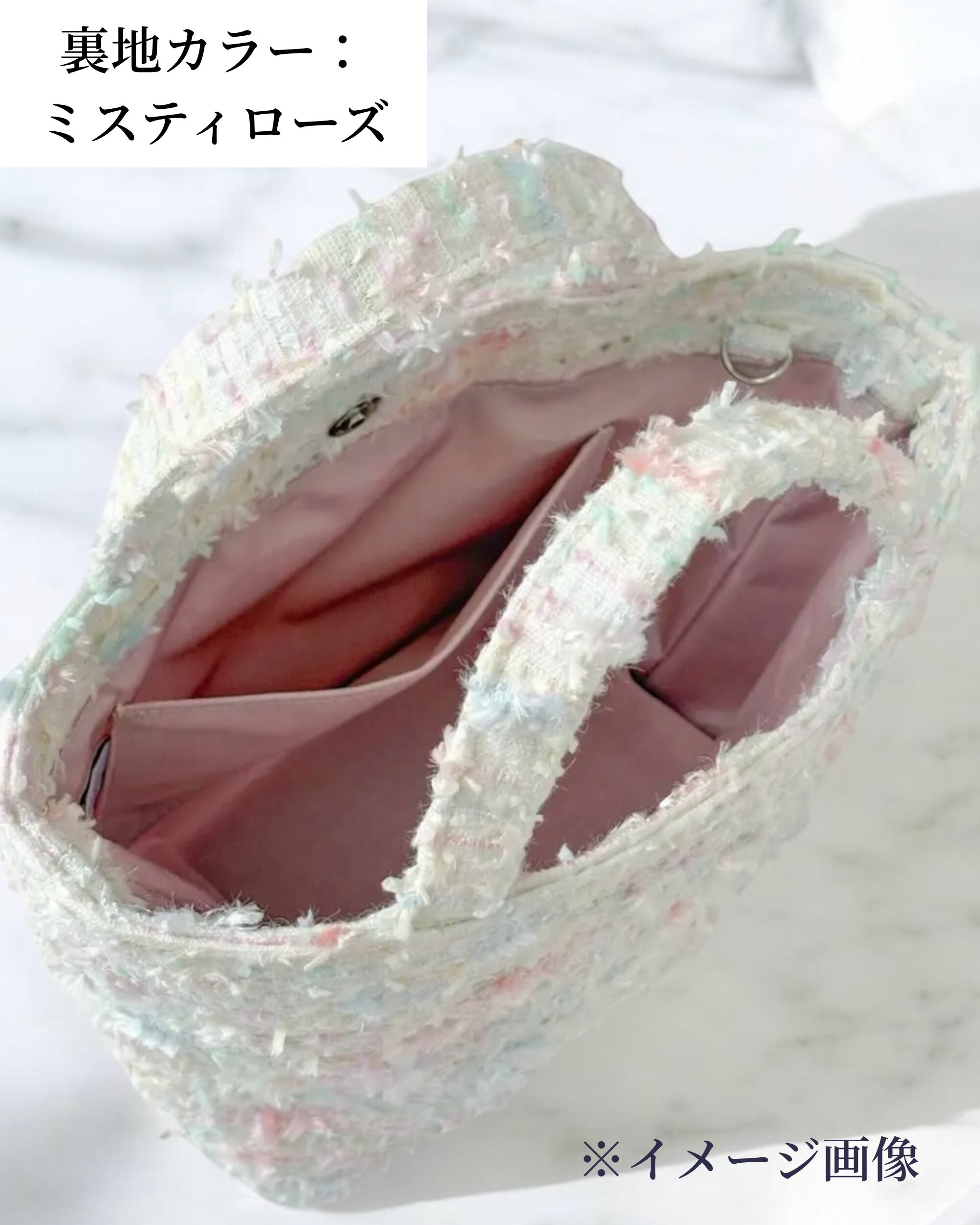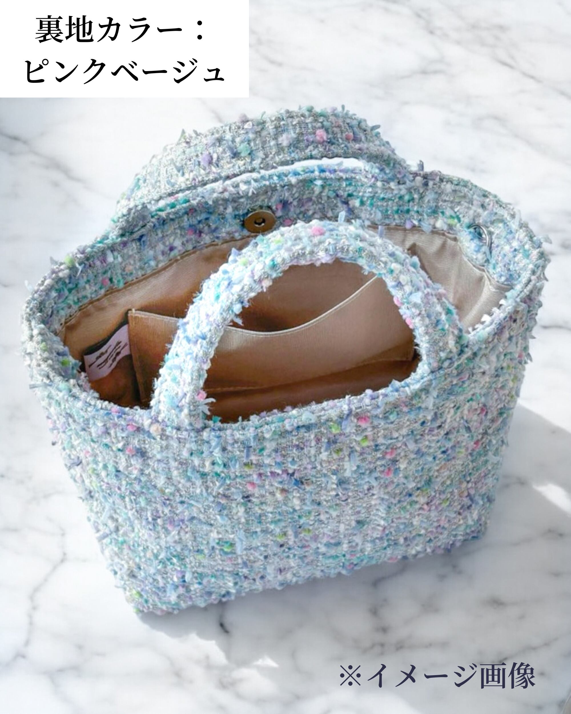 選べる春色ツイード ミニトート ホワイト ピンク ブルー パステル 2way Dカン付き 春のお出掛けご褒美