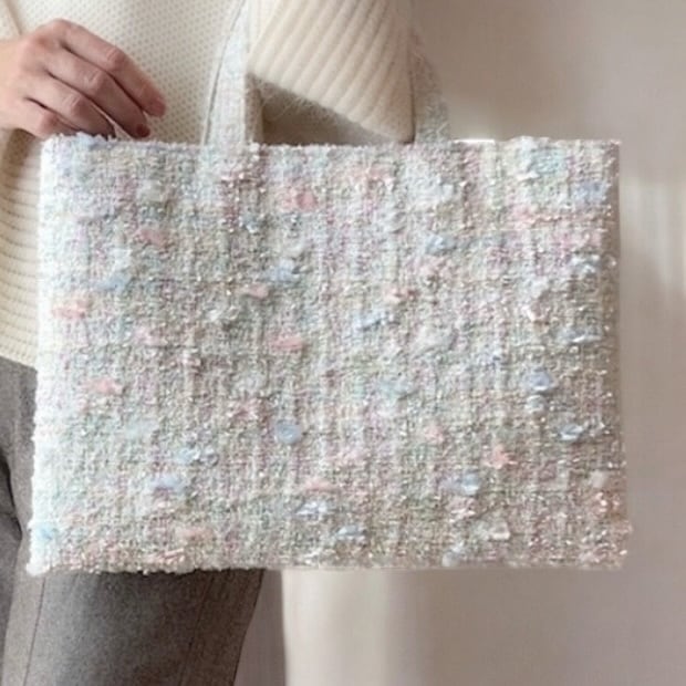 R様 専用ページ春色ツイード A4 フラットトートバッグ ホワイト