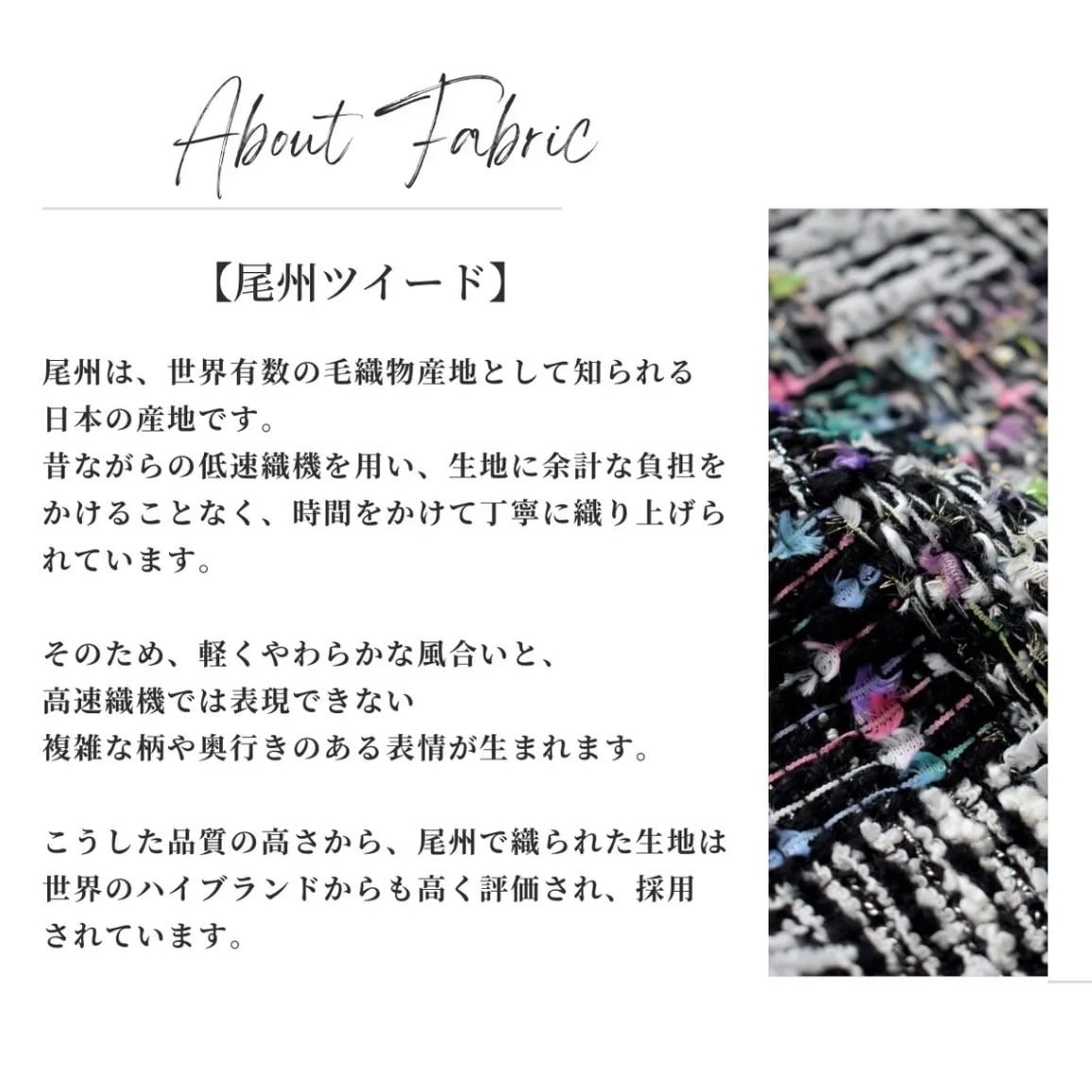 ※ツイード生地は甘撚りで織られた繊細な織物です。