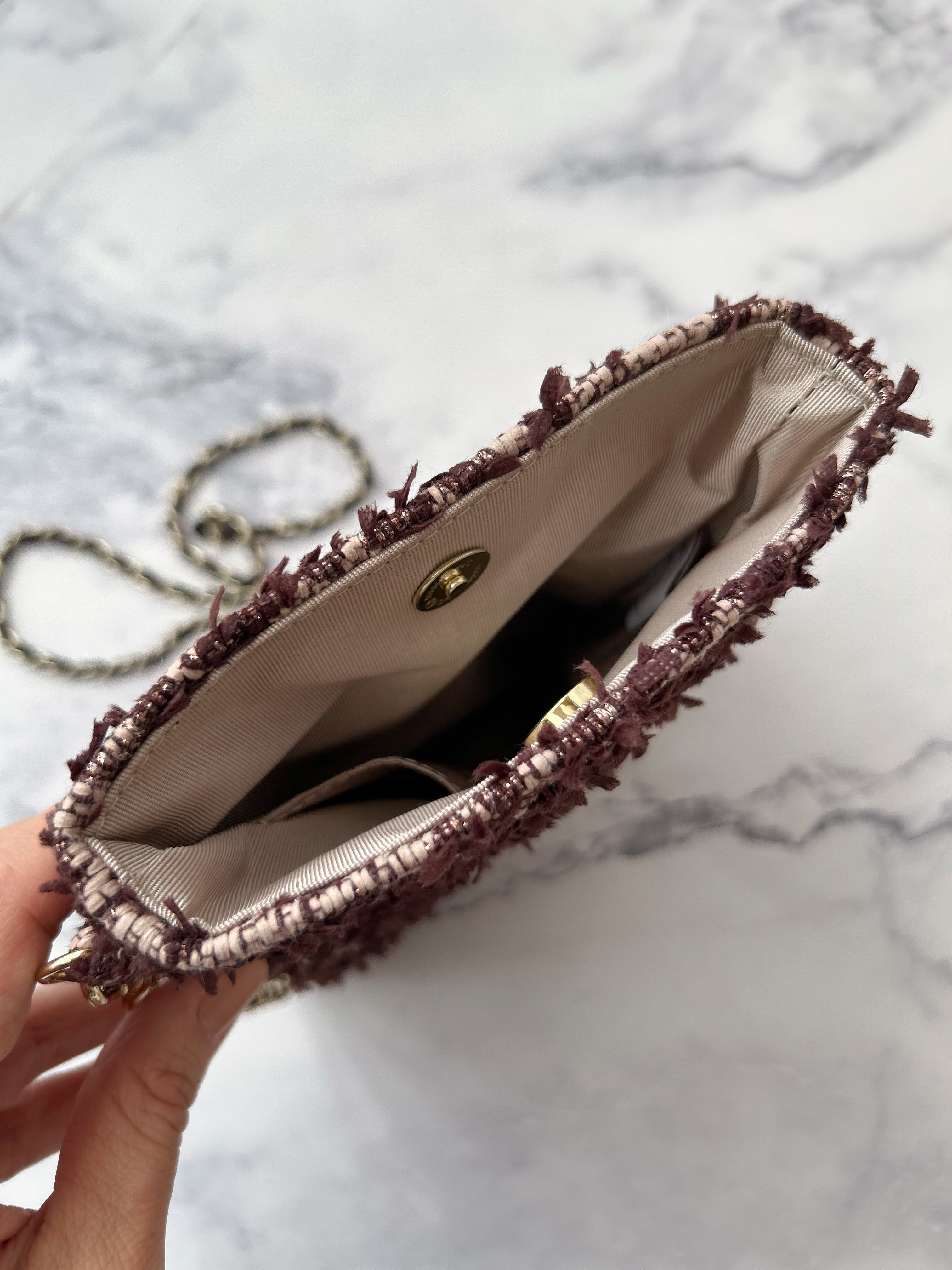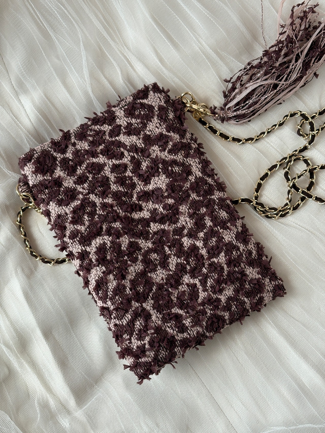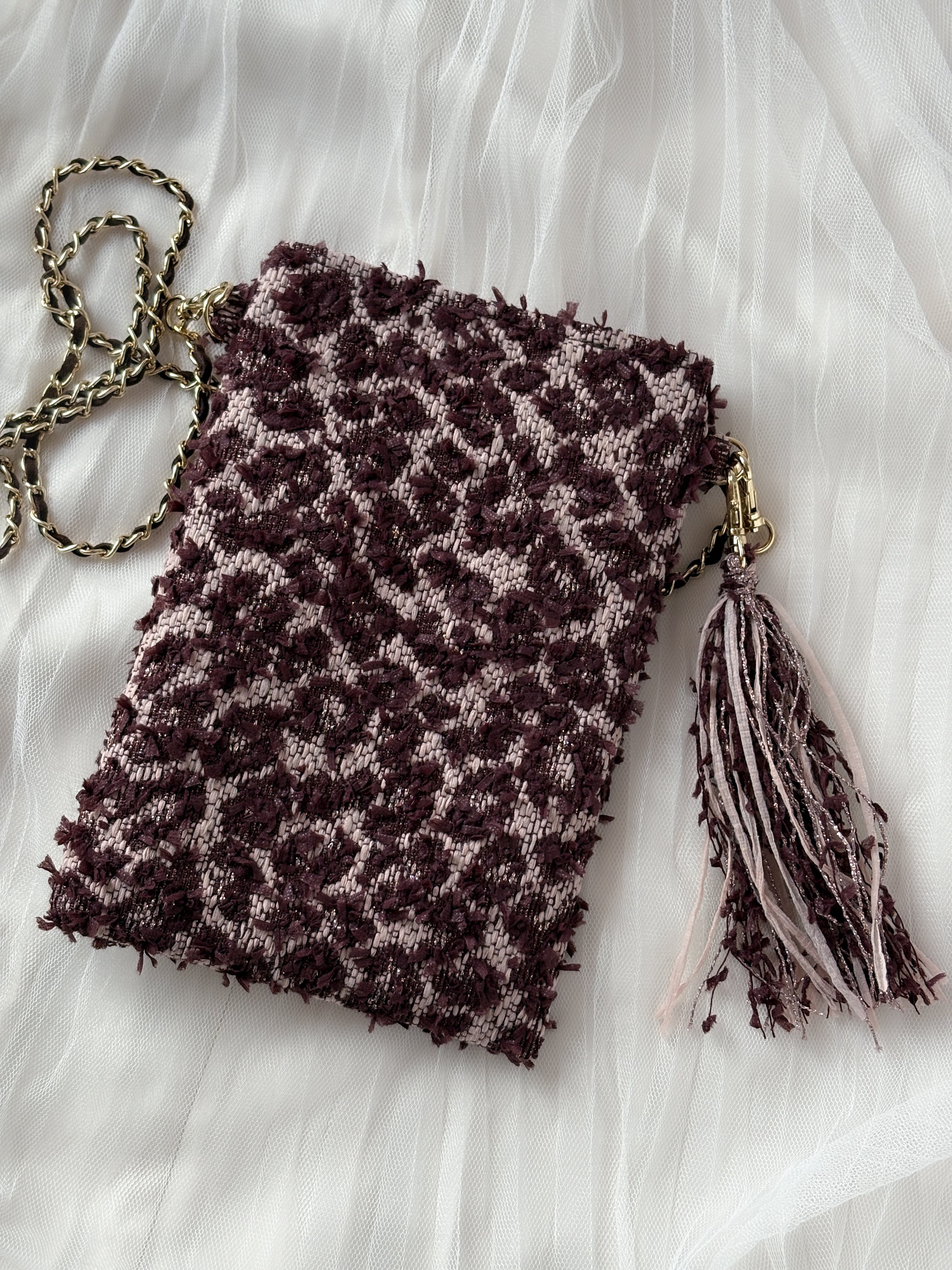 タッセル付きスマホポシェット。