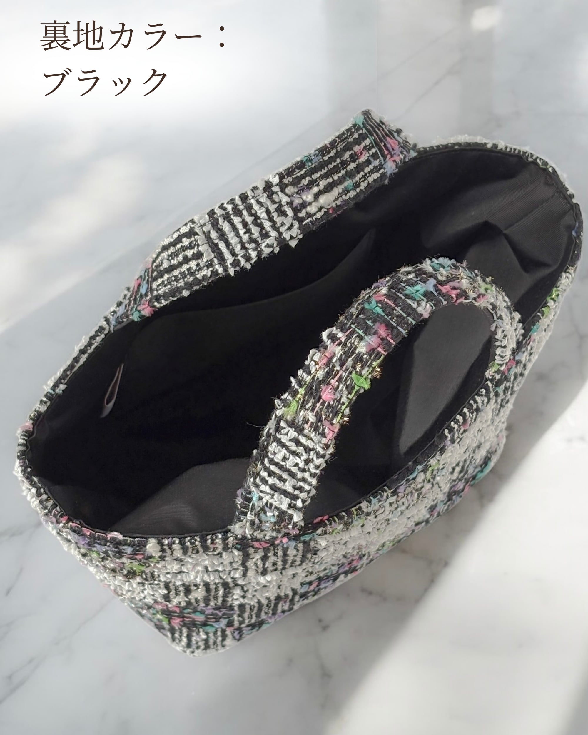 S様専用ページ A4マチトートバッグ ブラック ツイード マチ広め トートバッグ モノトーン