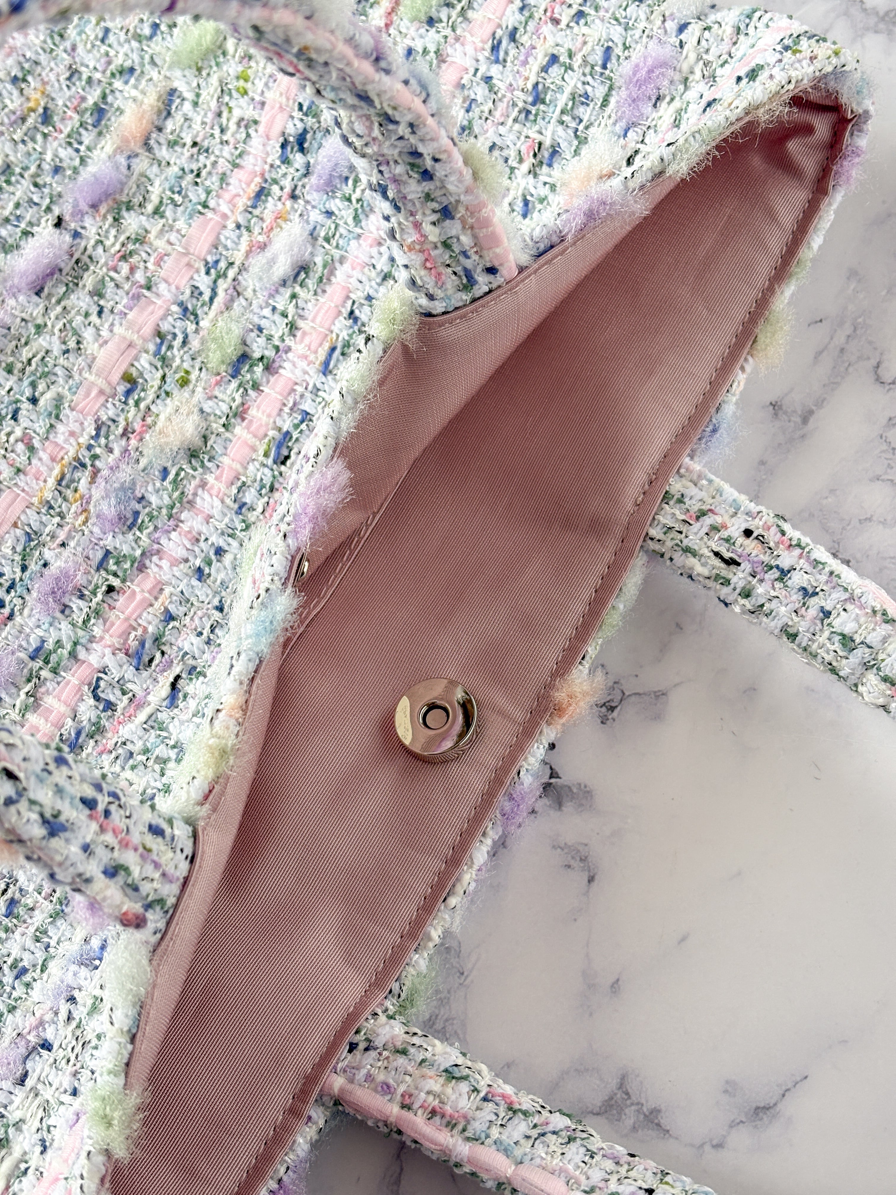 白ピンク A4 フラットトートバッグ ツイード サブバッグ レッスンバッグ プレゼントに♡
