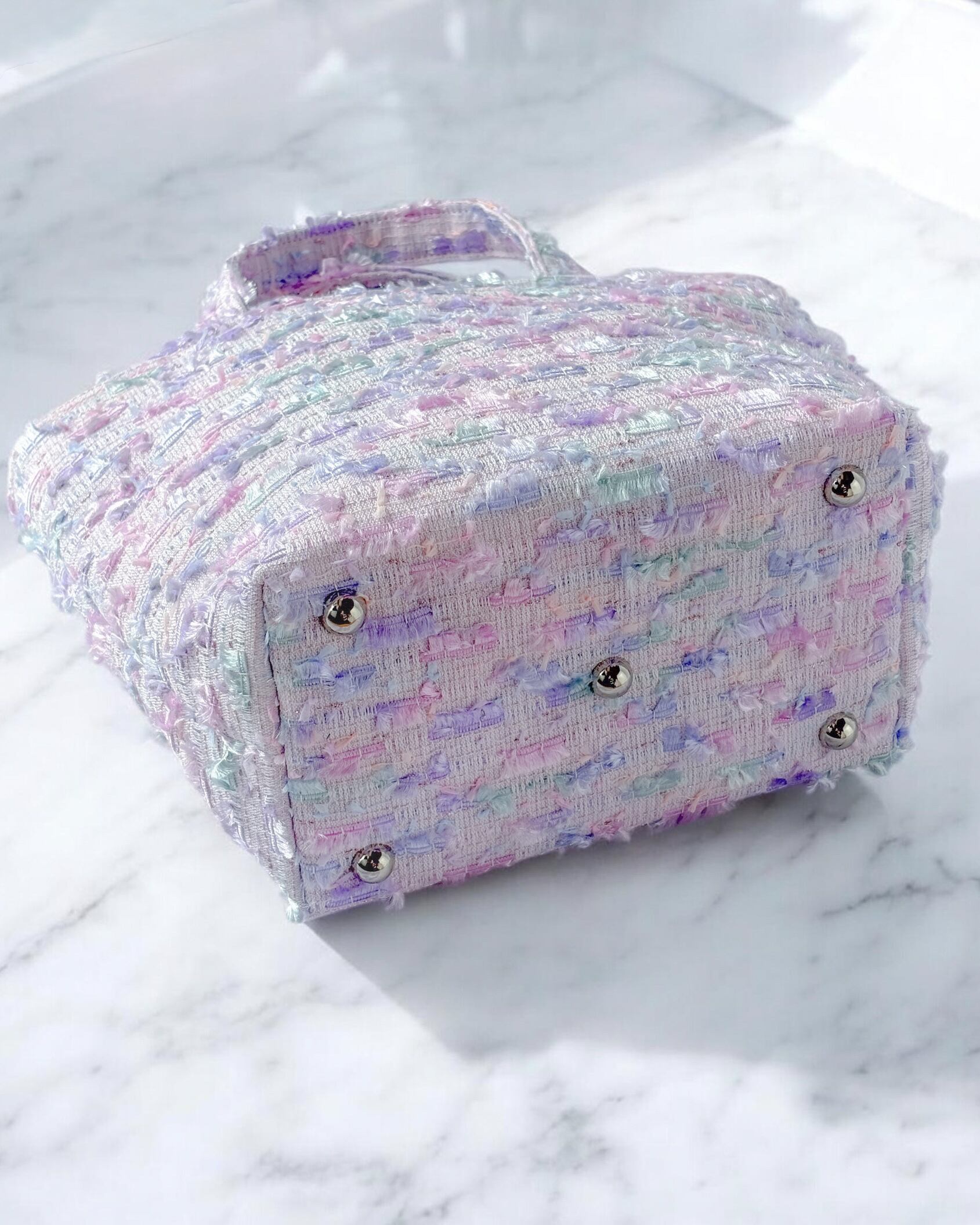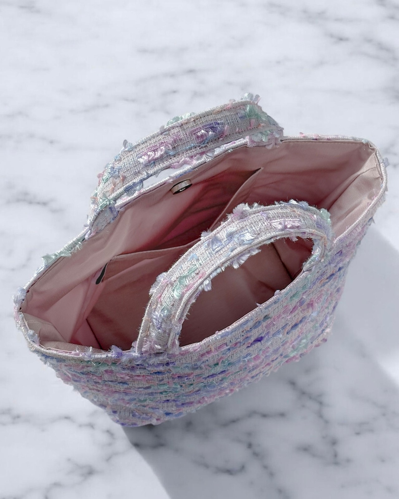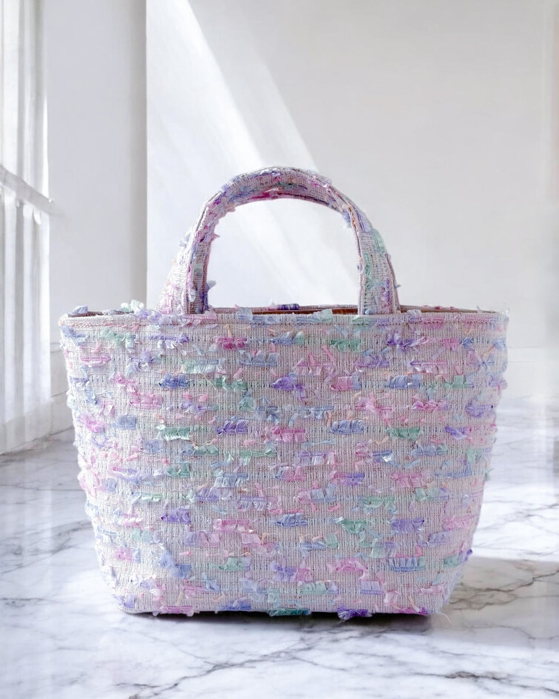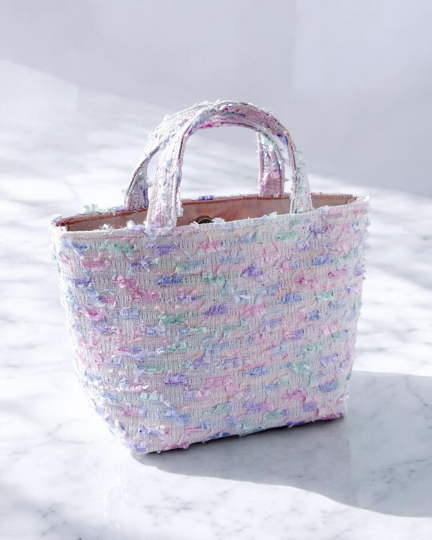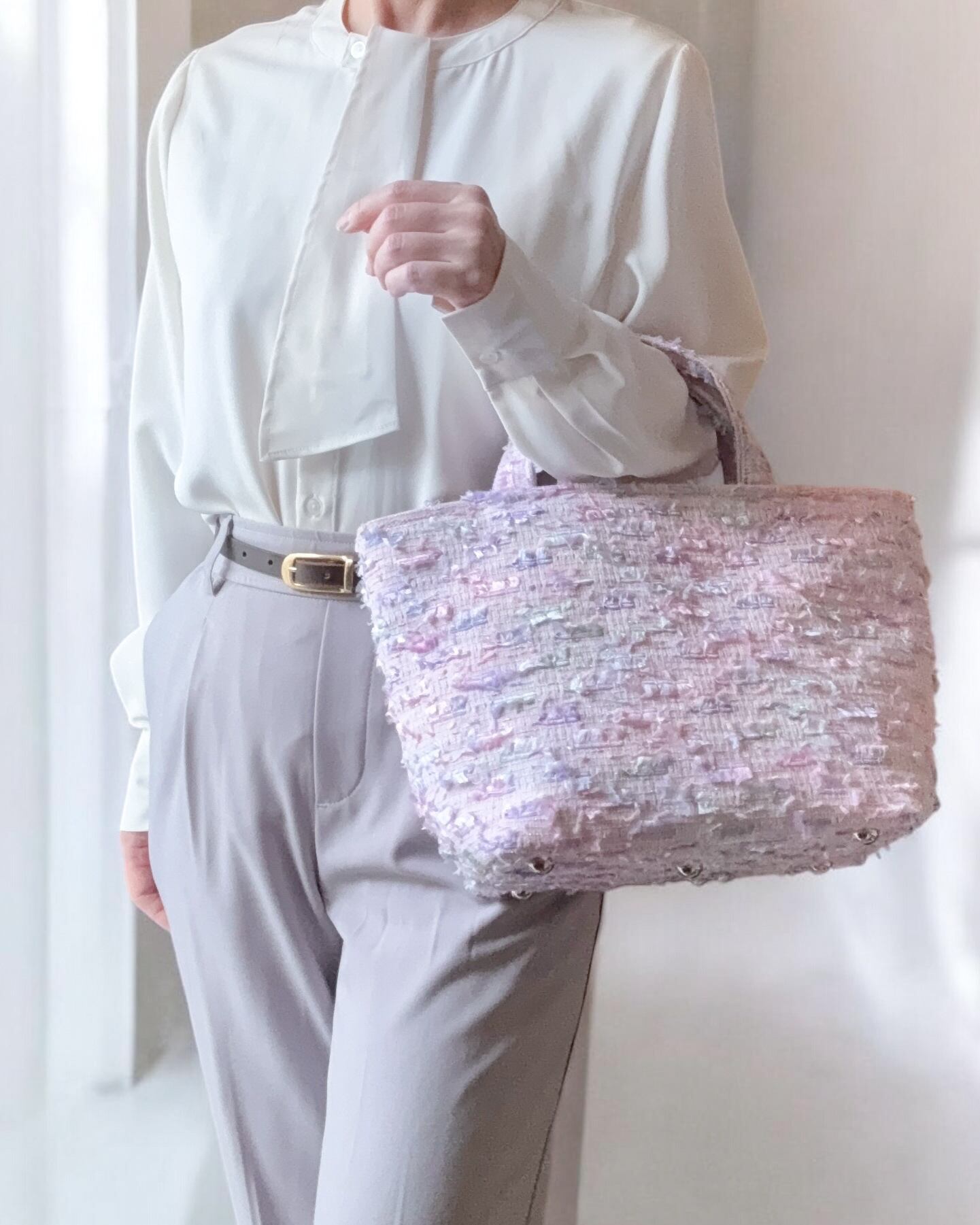 ラベンダーツイードのトートバッグ。