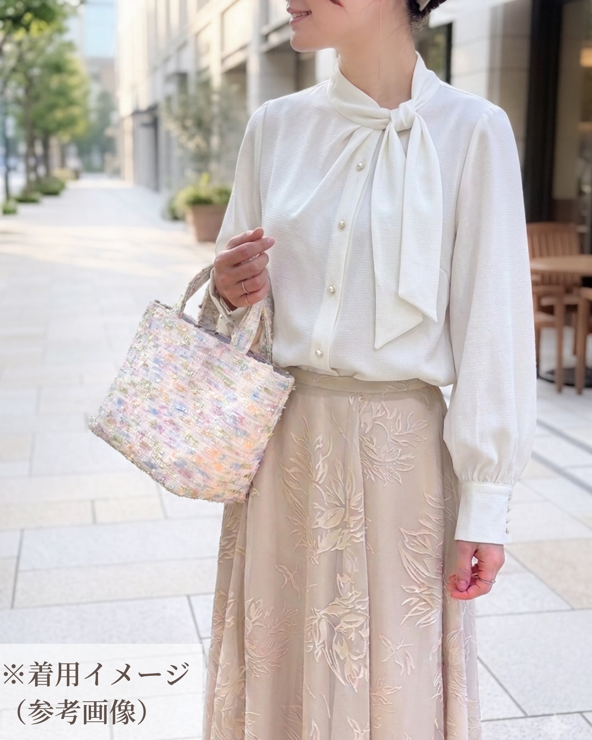 淡いピンクやブルーなど、優しいパステルミックスが装いにやわらかさを添えます。