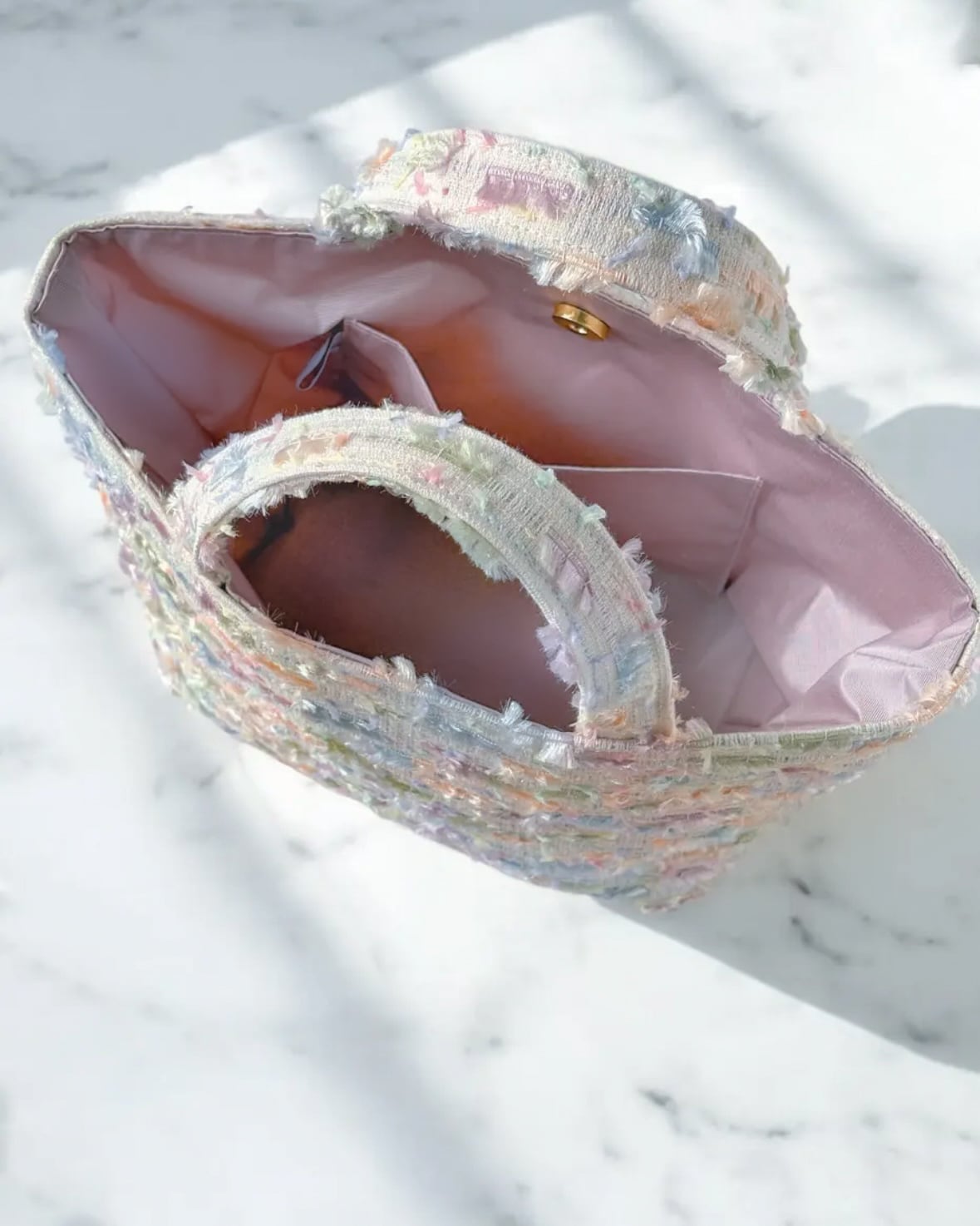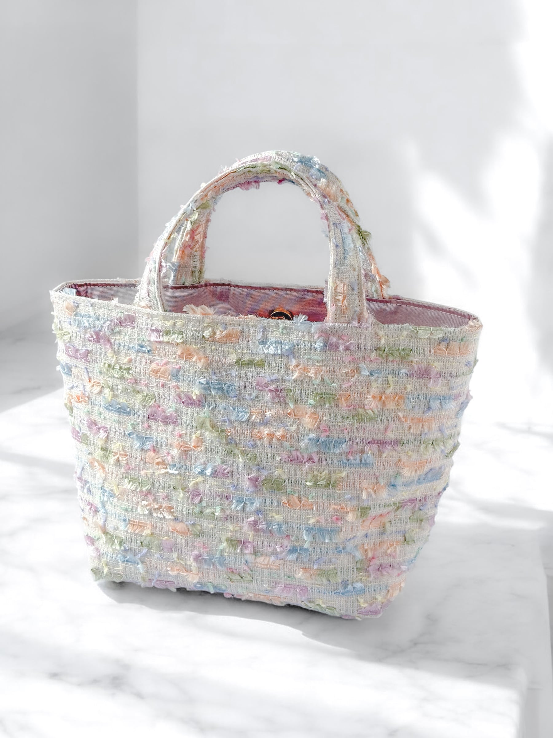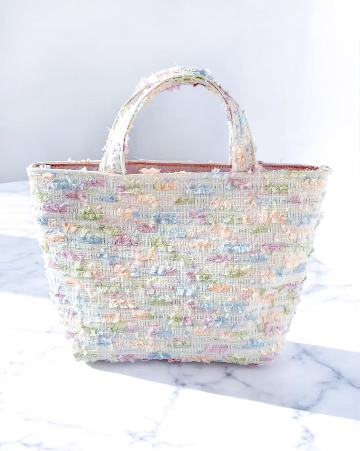 優しい色合いのトートバッグ。