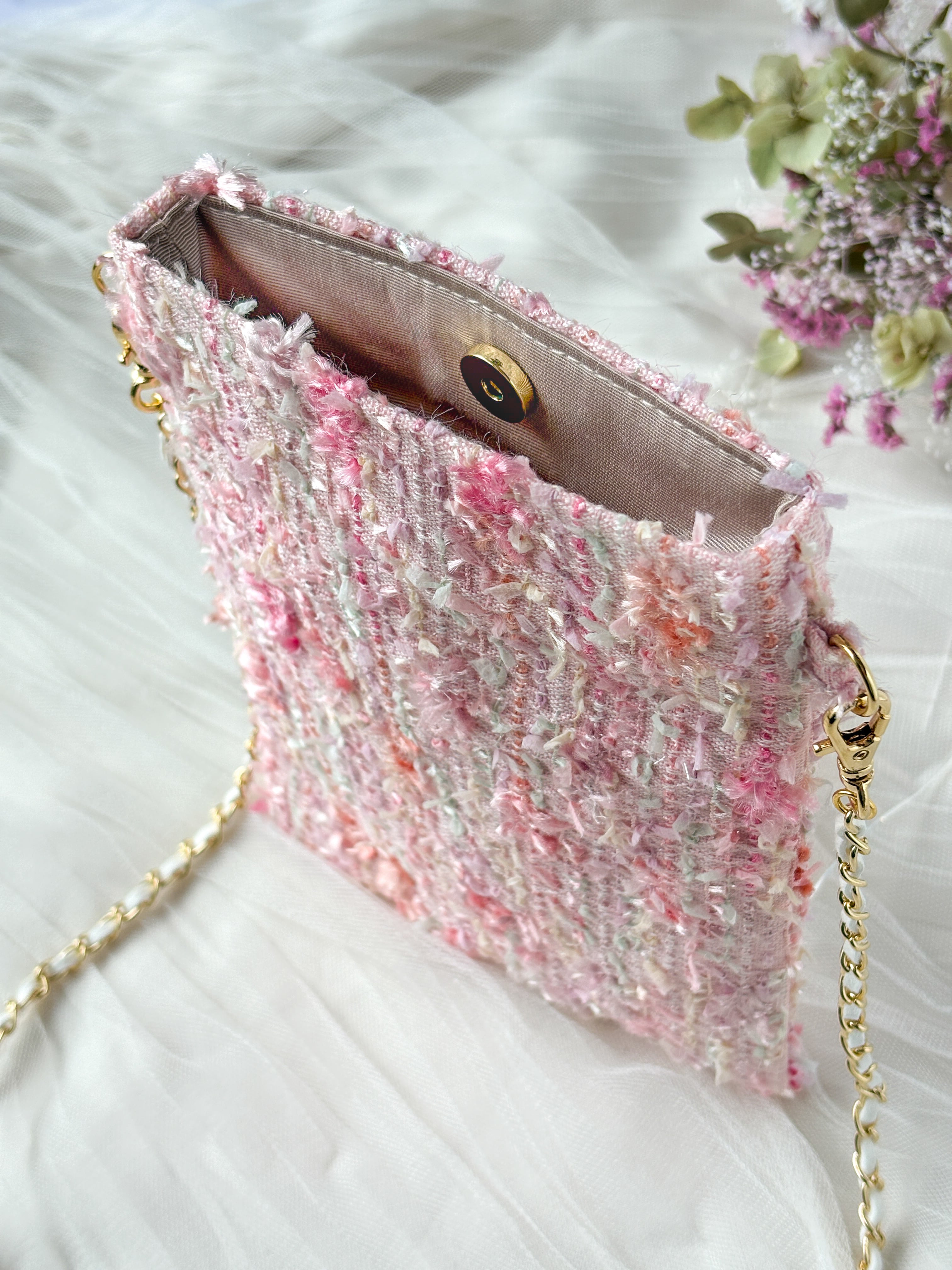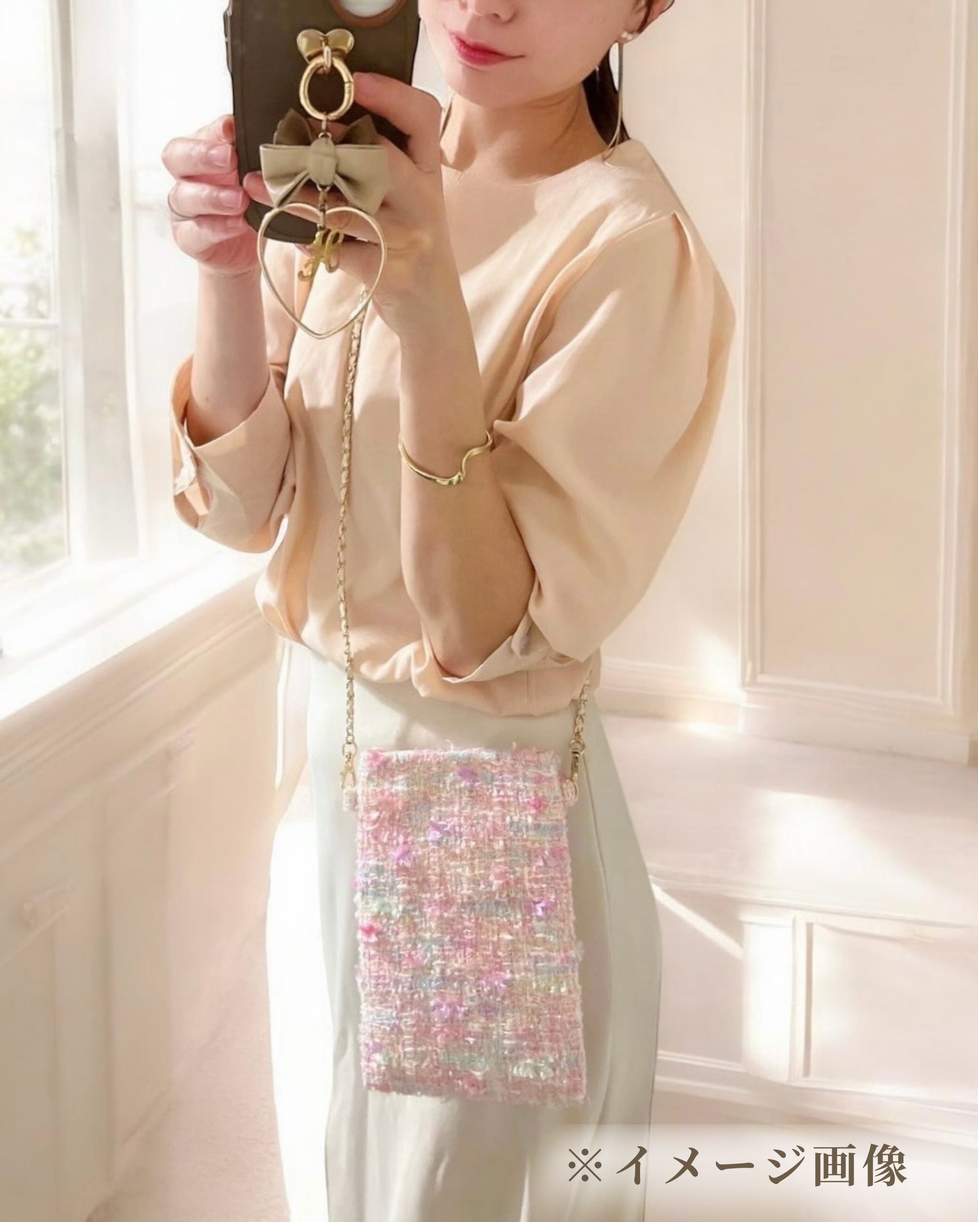ピンク ミックス スマホポシェット ツイード 春のお出かけ ご褒美 プレゼント♡