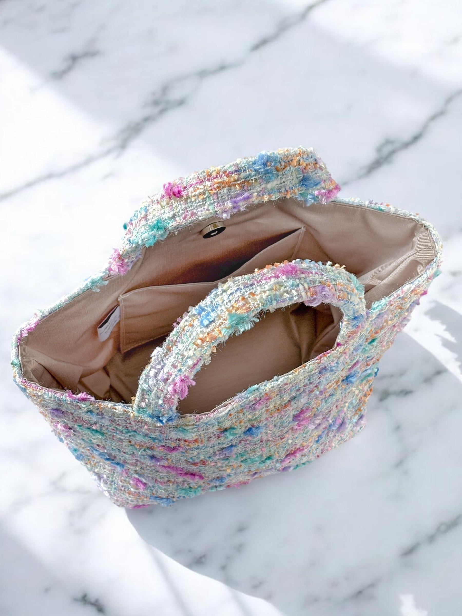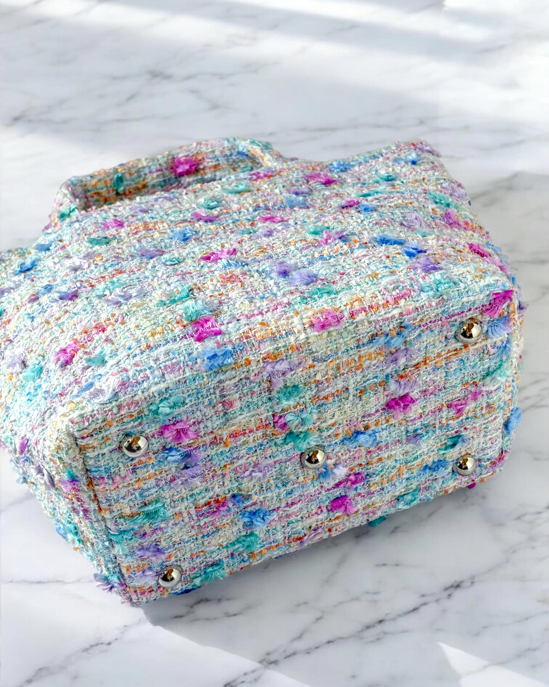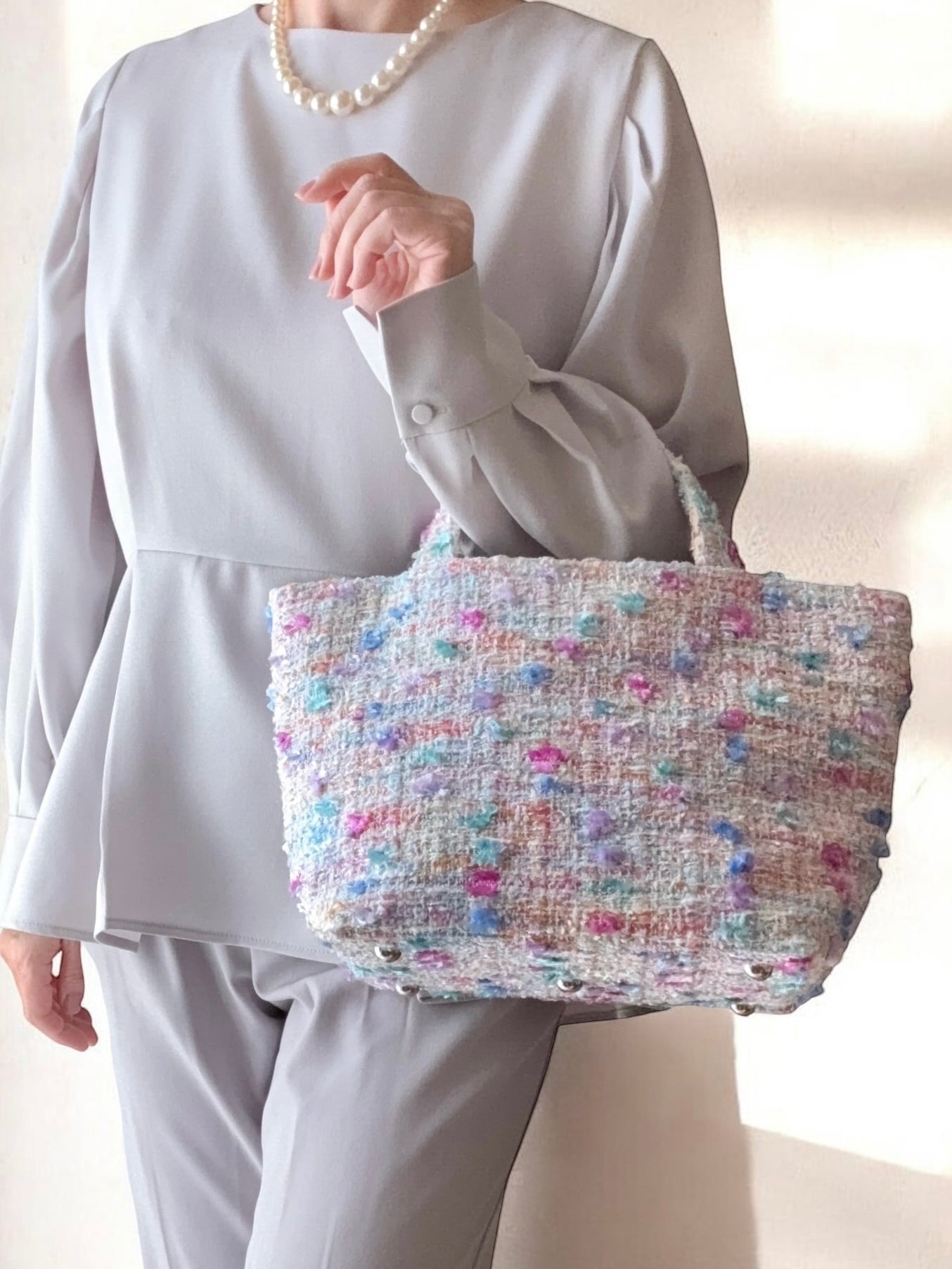 パステルミックス ジュエリーツイード マチ広めトートバッグ 底鋲付きプレゼント ご褒美に♡