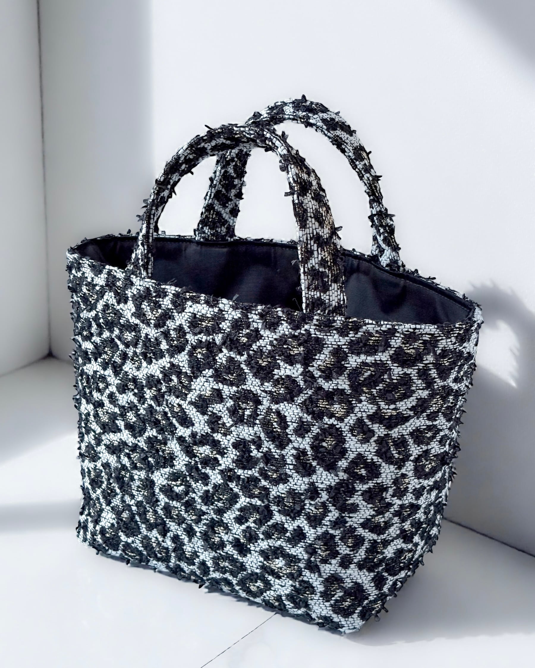 大人のためのモノトーンレオパードバッグです。