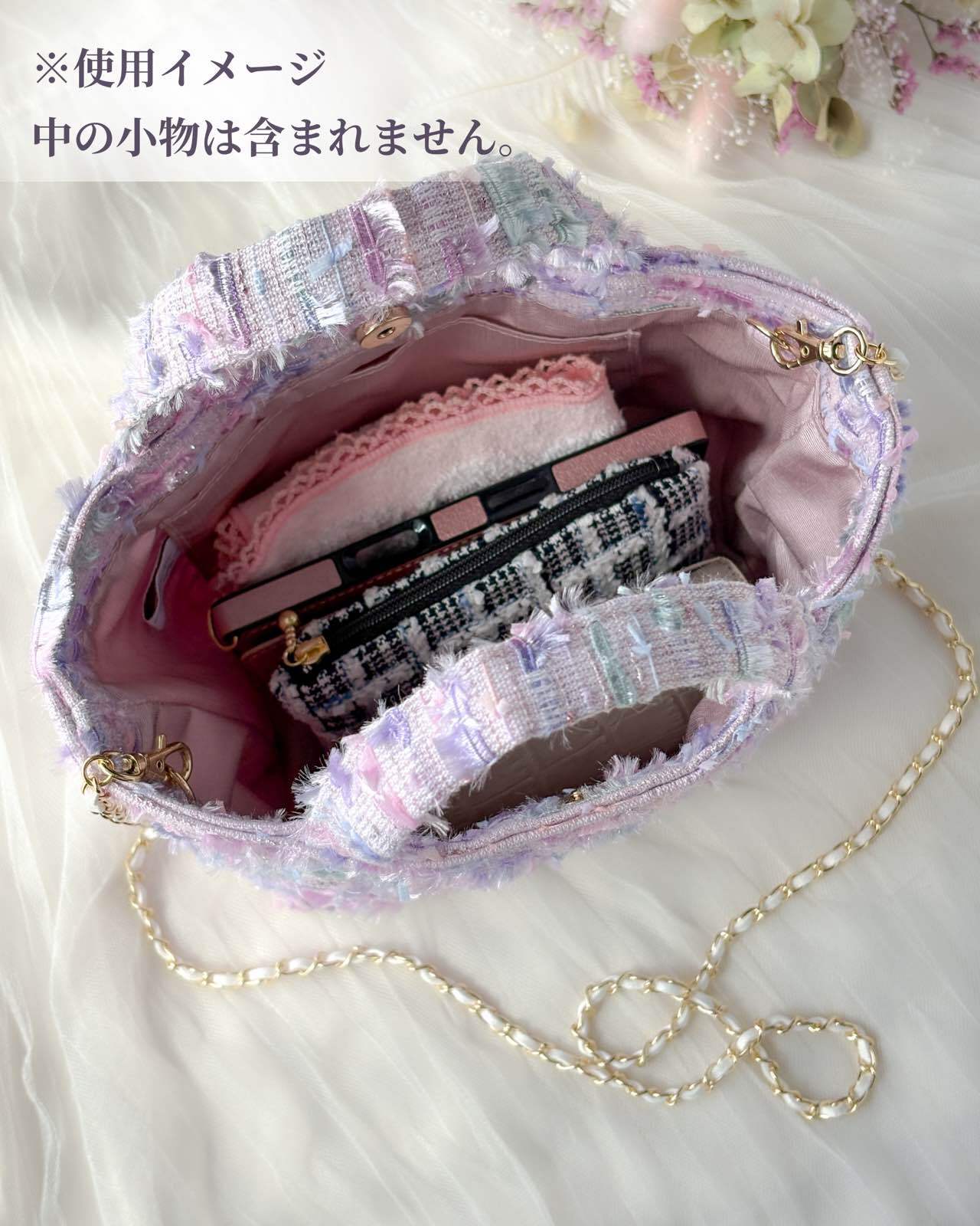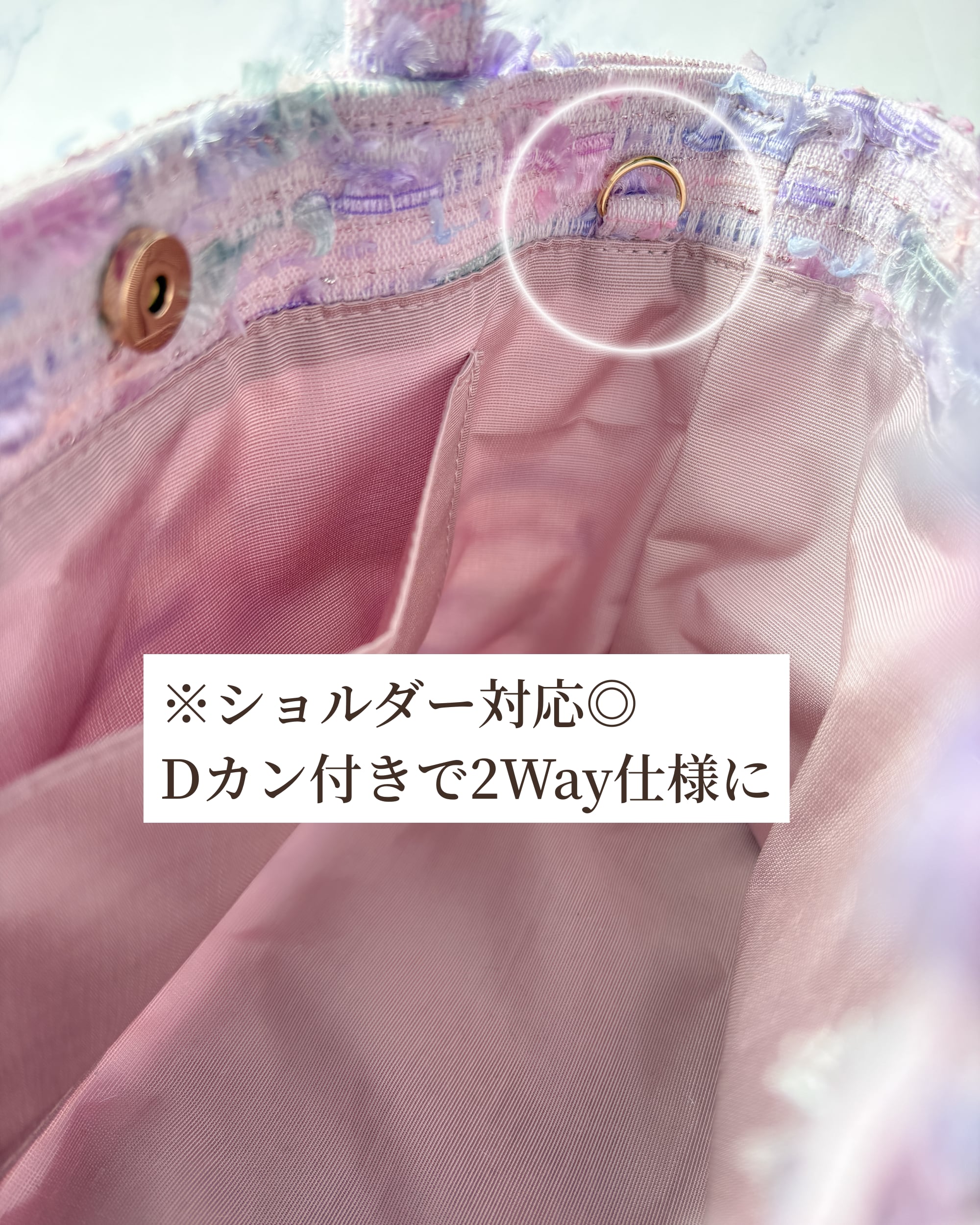 春色 ツイード ラベンダー ミニトート ショルダー対応 2way ミロス ジュエリーツイード お出掛け Dカン付き ご褒美