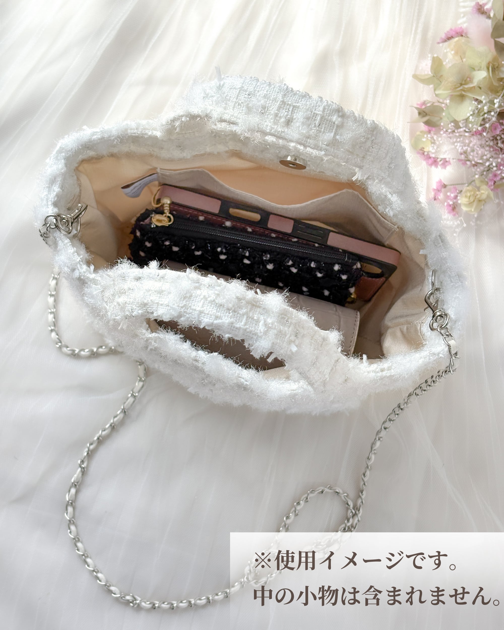 ジュエリーツイード・ホワイトミニトート|Jewelry Snow