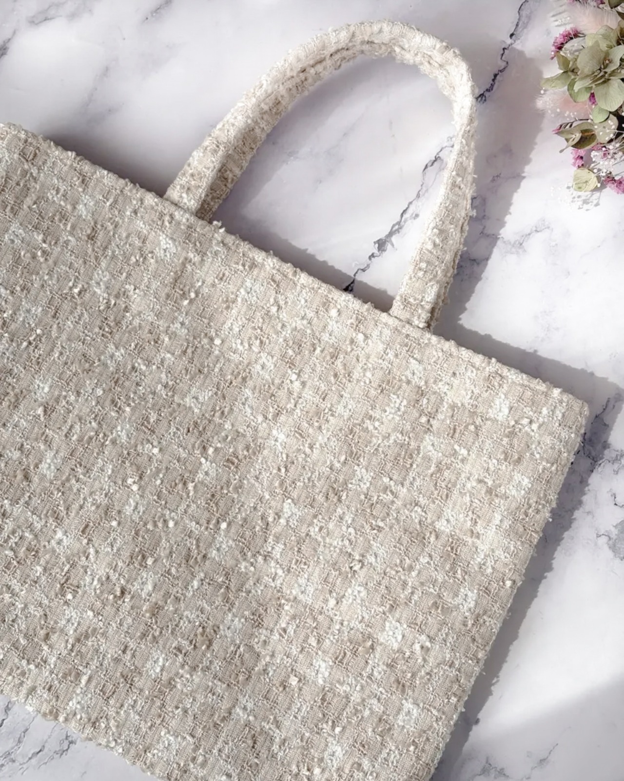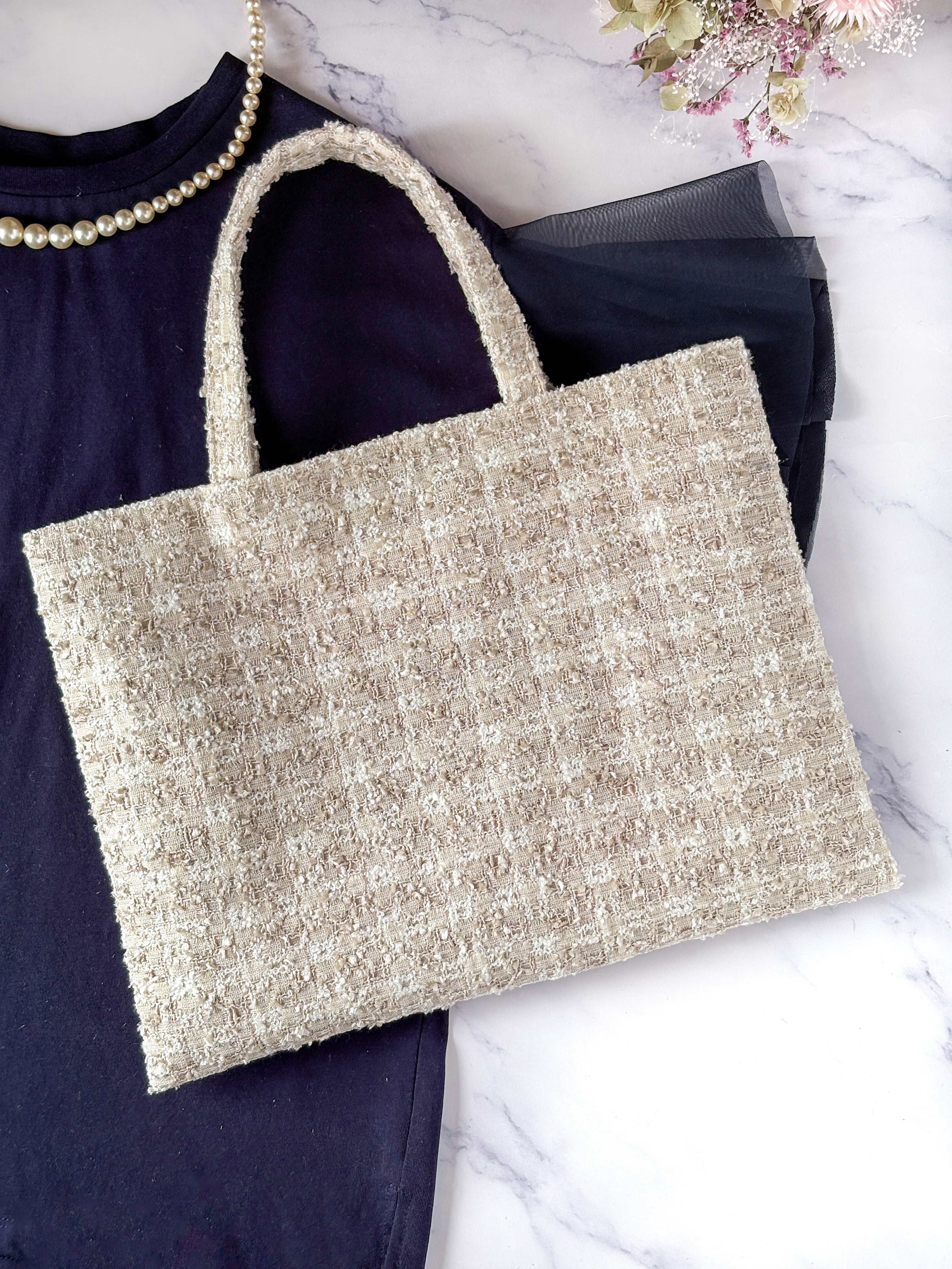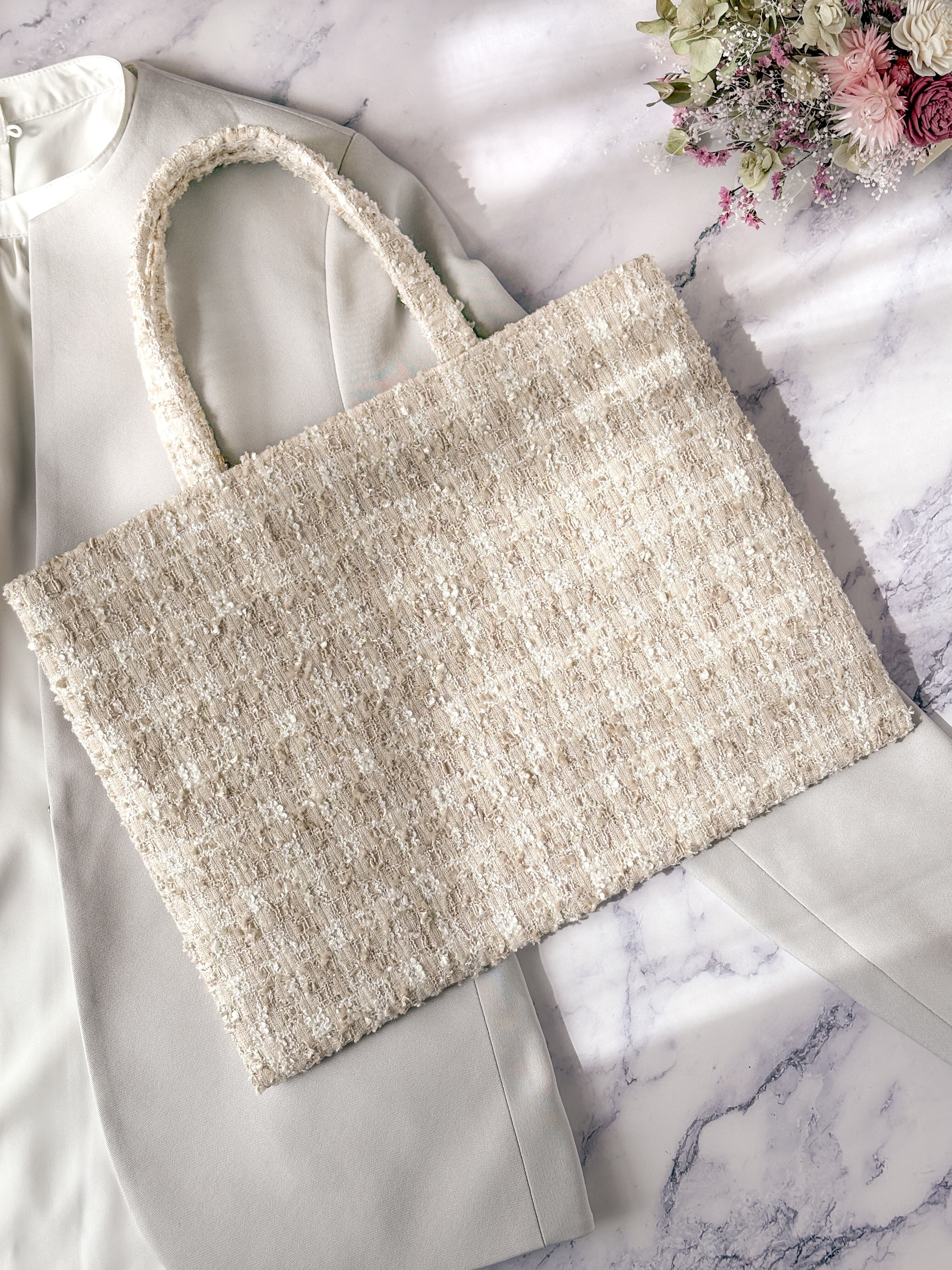ベージュ チェック A4 フラットトートバッグ 尾州ツイード 卒業 入学式 レッスンバッグ サブバッグ ご褒美バッグ