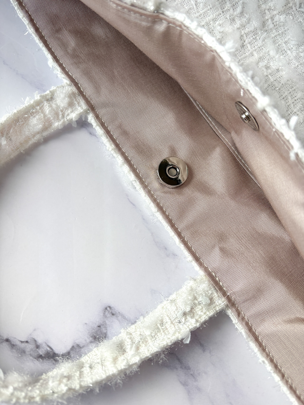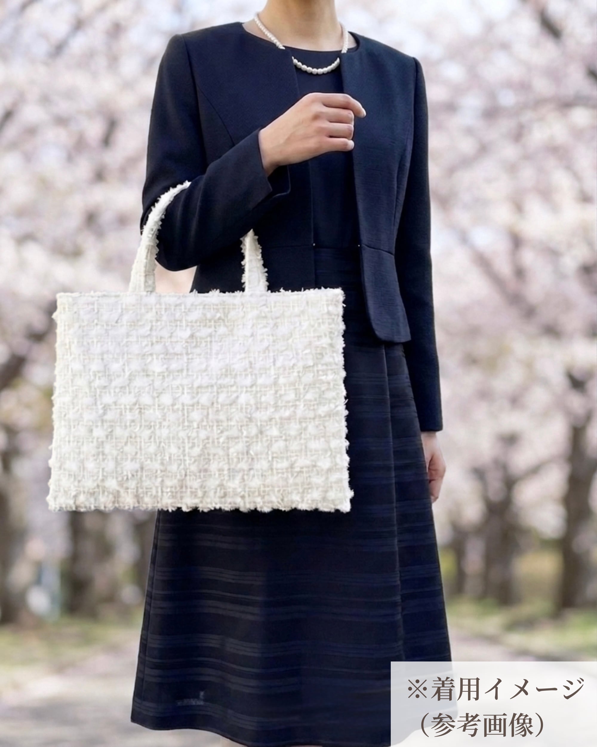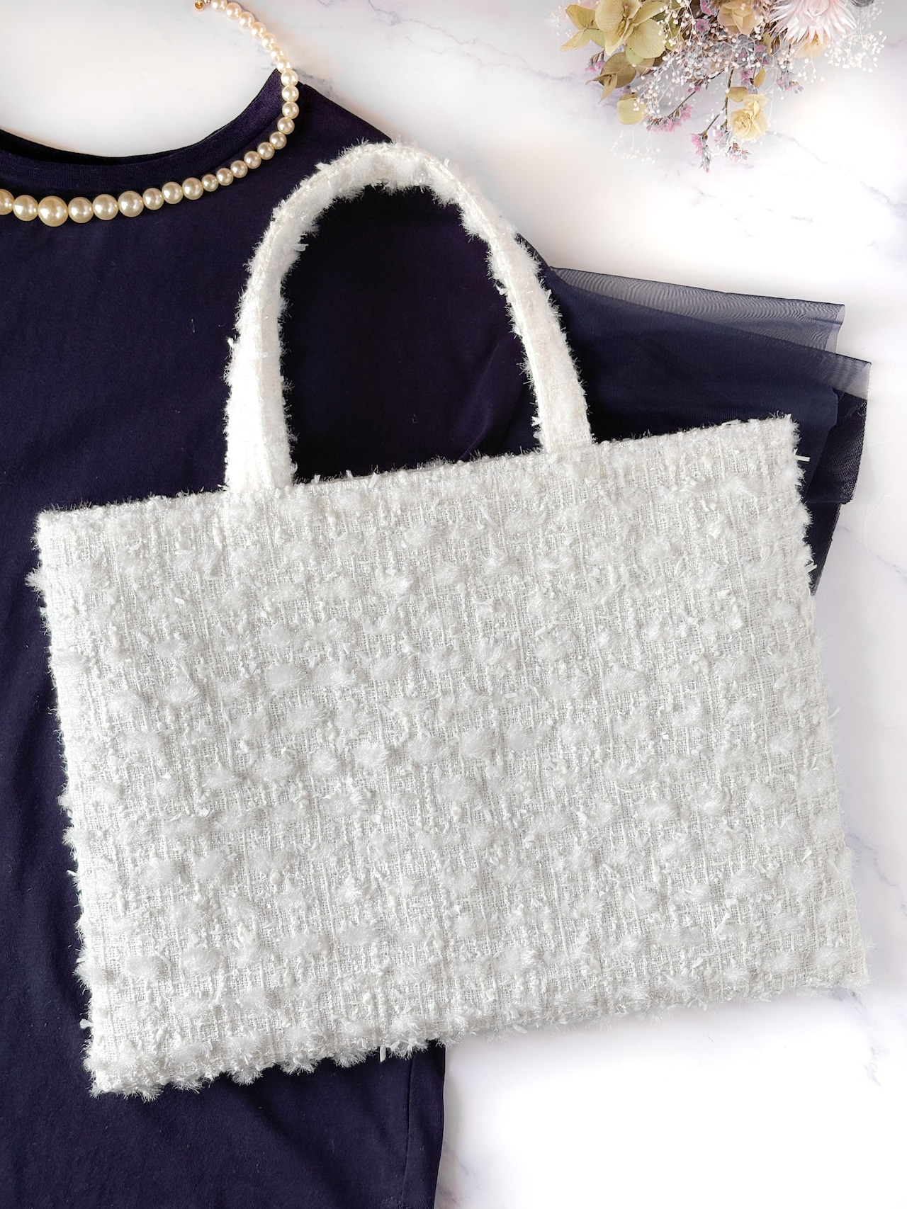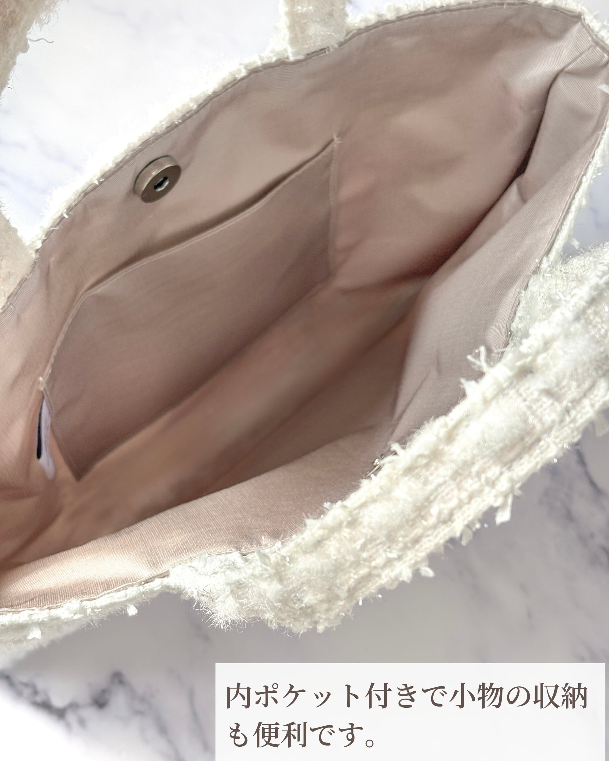 ジュエリーツイード・ホワイトA4フラットトート |Jewelry Snow