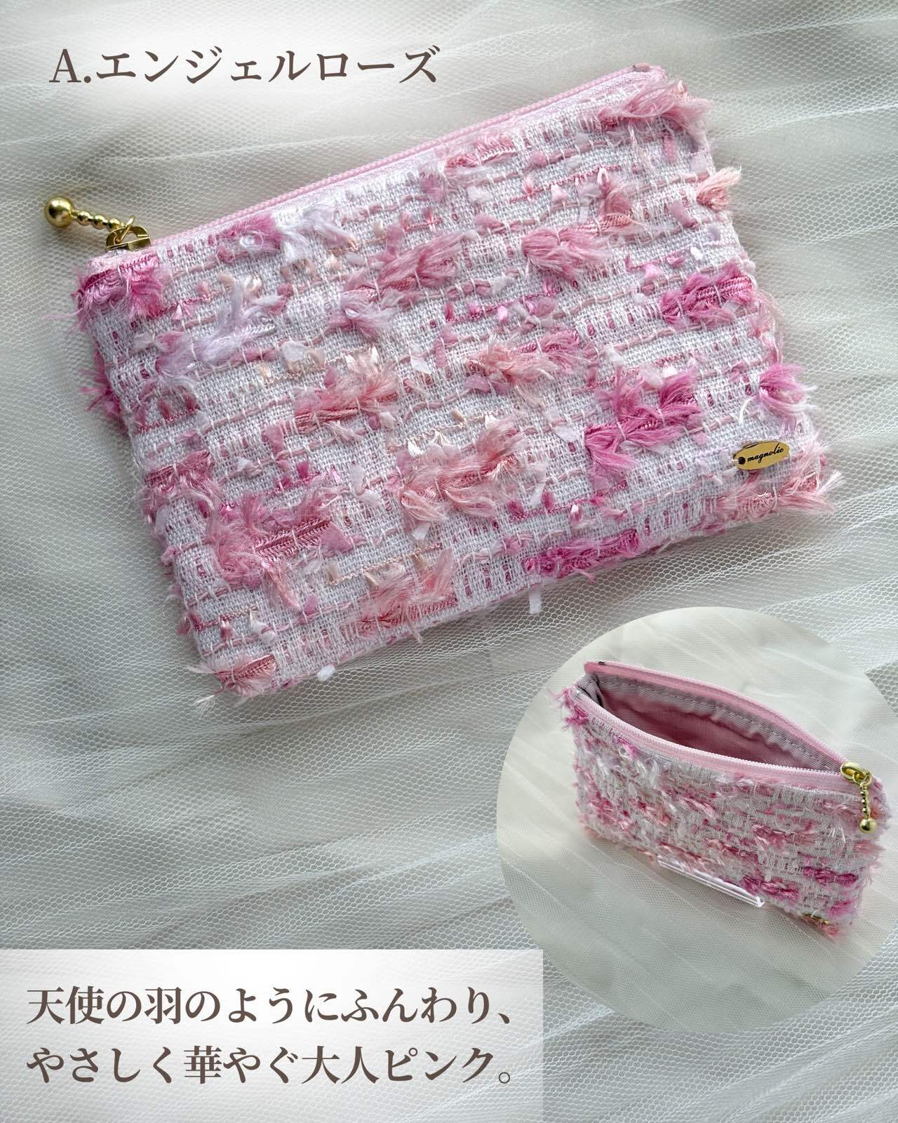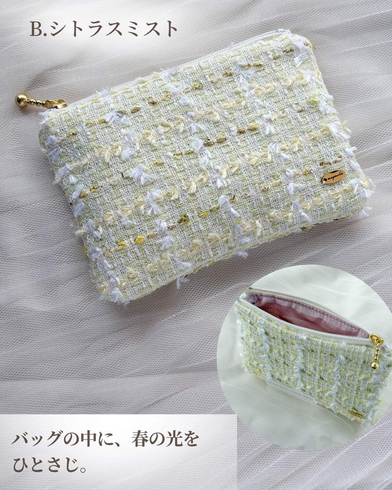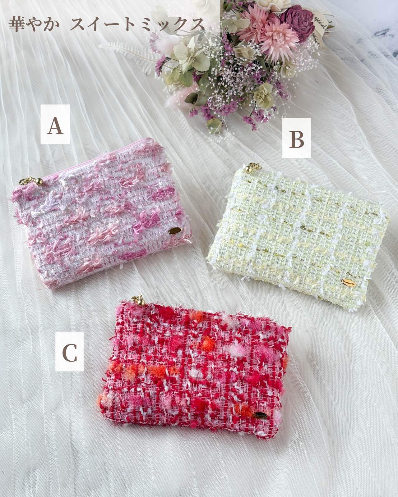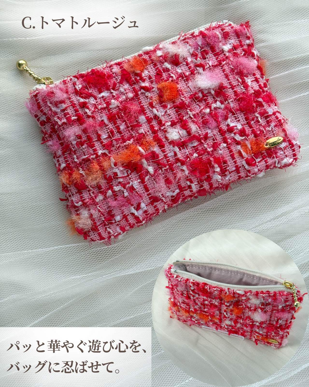 ミニフラットポーチ レッド、レモンイエロー、ローズ 化粧ポーチ Miros ツイード プレゼントに♡