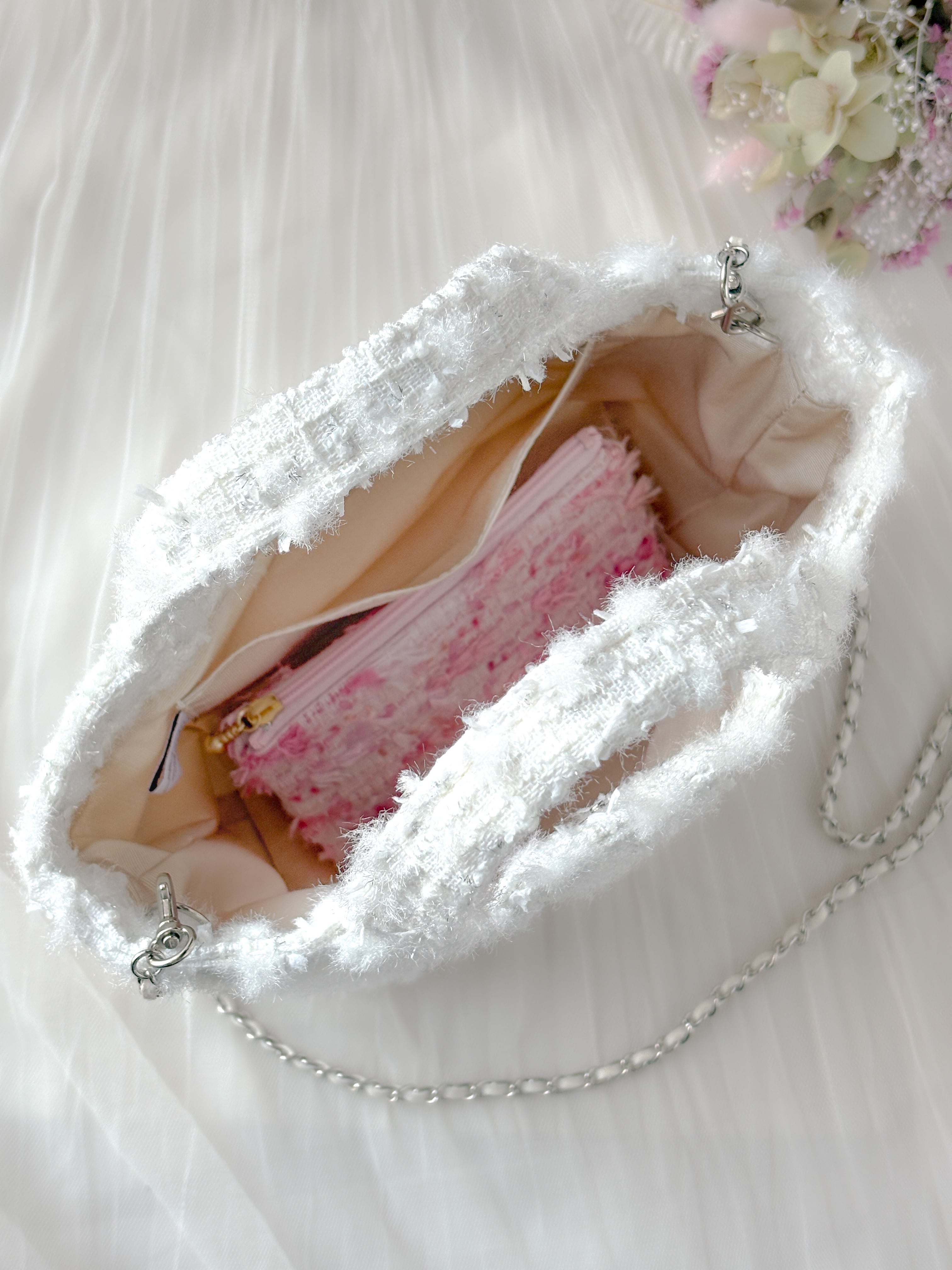 上質な国産 Miros社のジュエリーツイードを贅沢に使用。