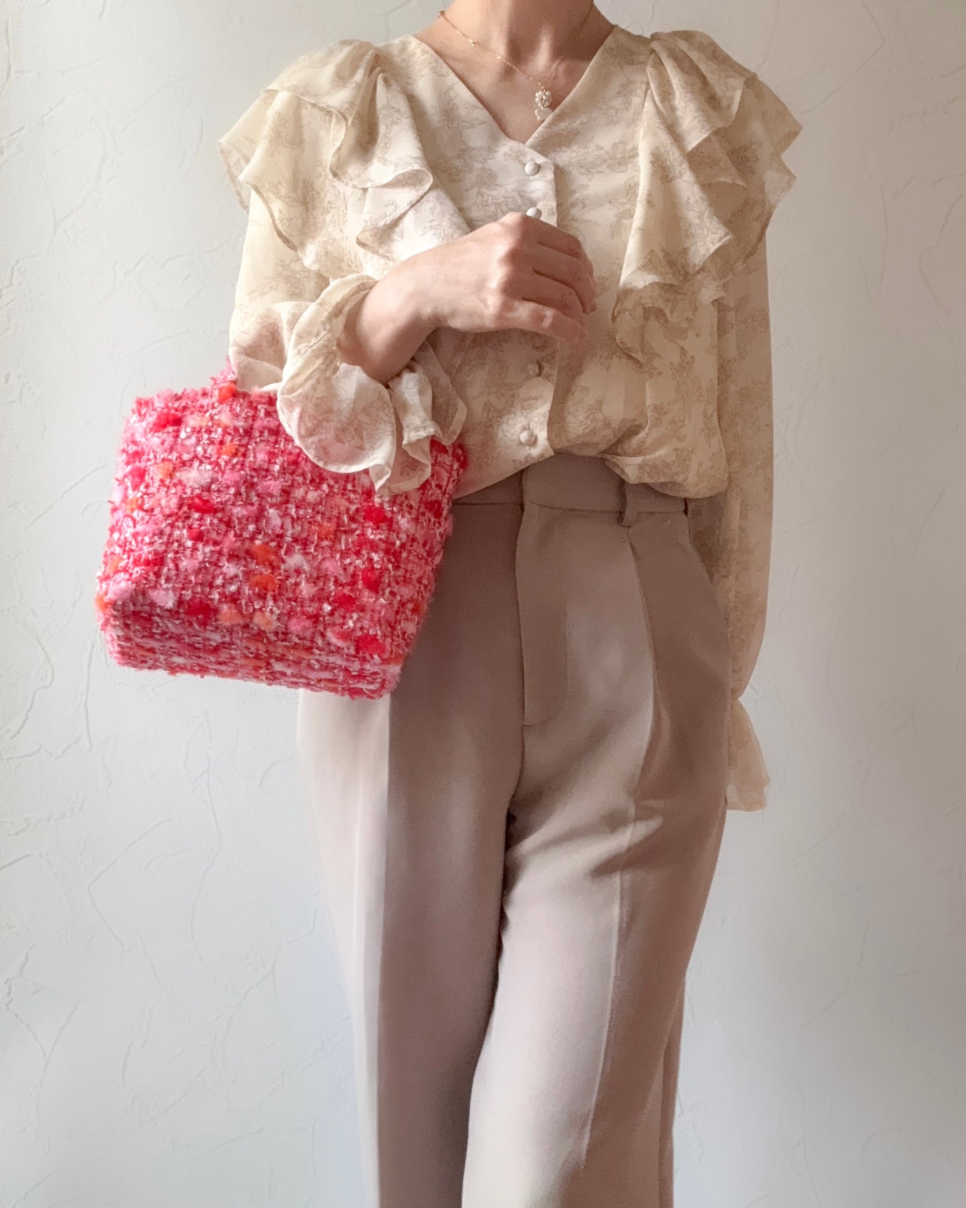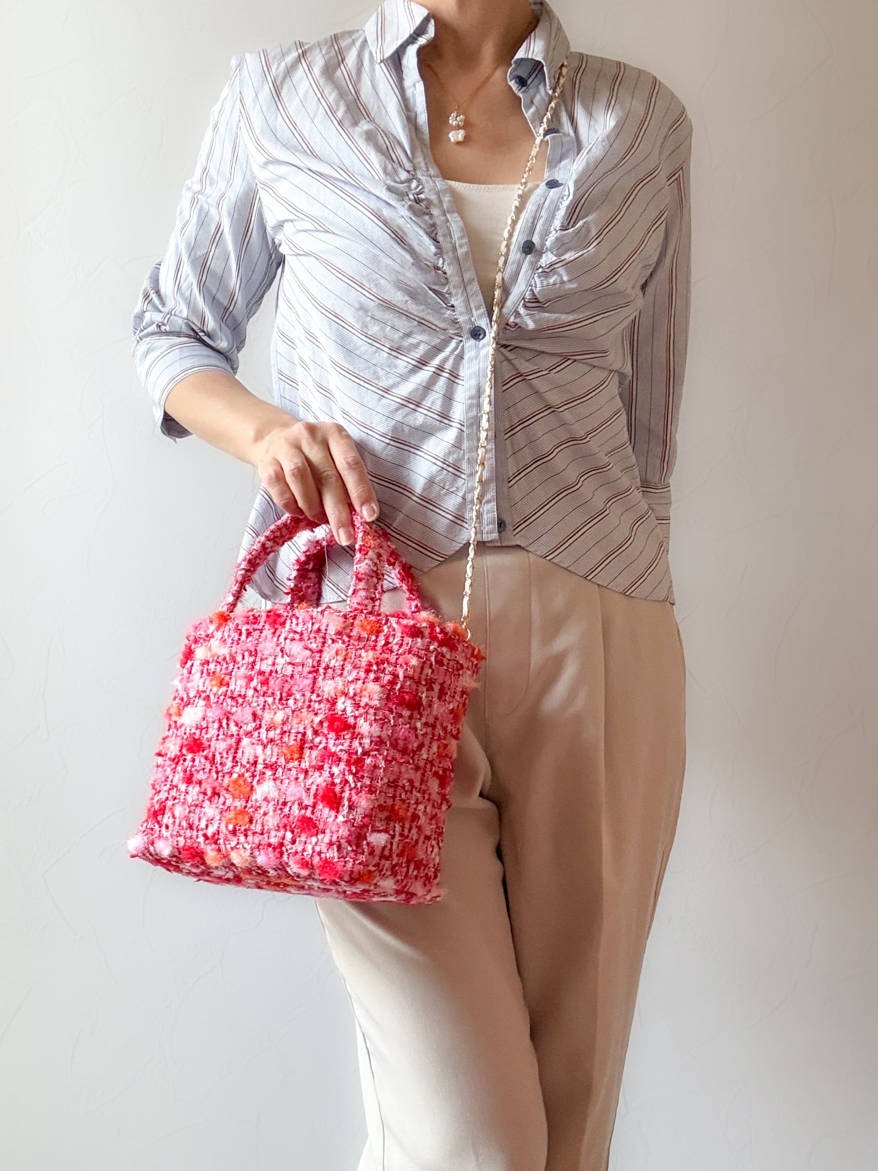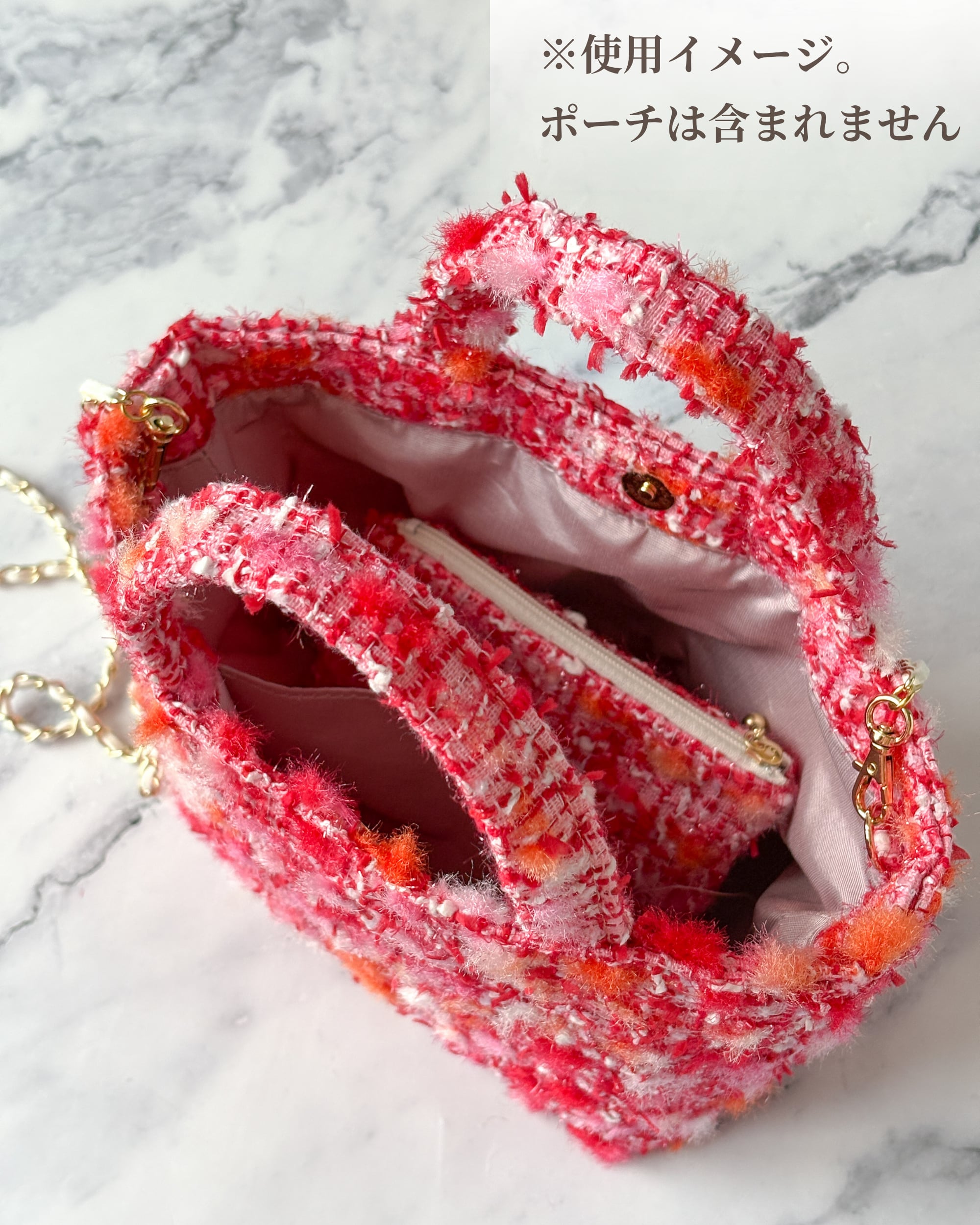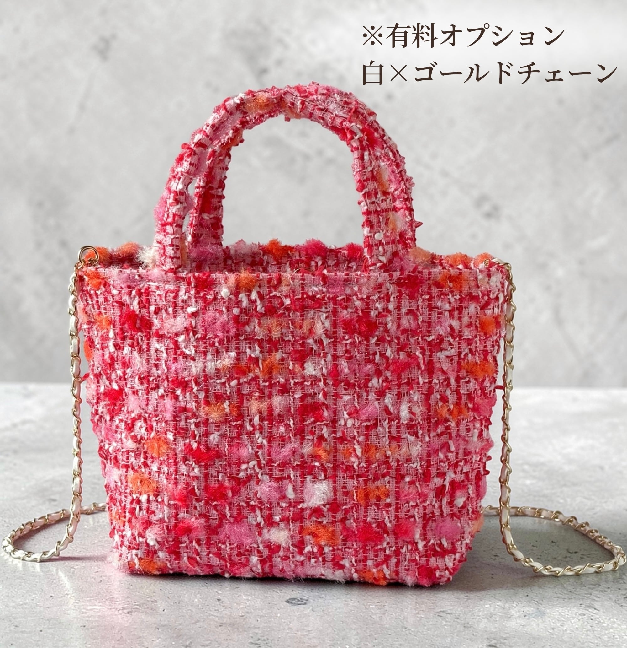 赤ツイード ミニトート ショルダー対応 2way ミロス ジュエリーツイード お出掛け ご褒美