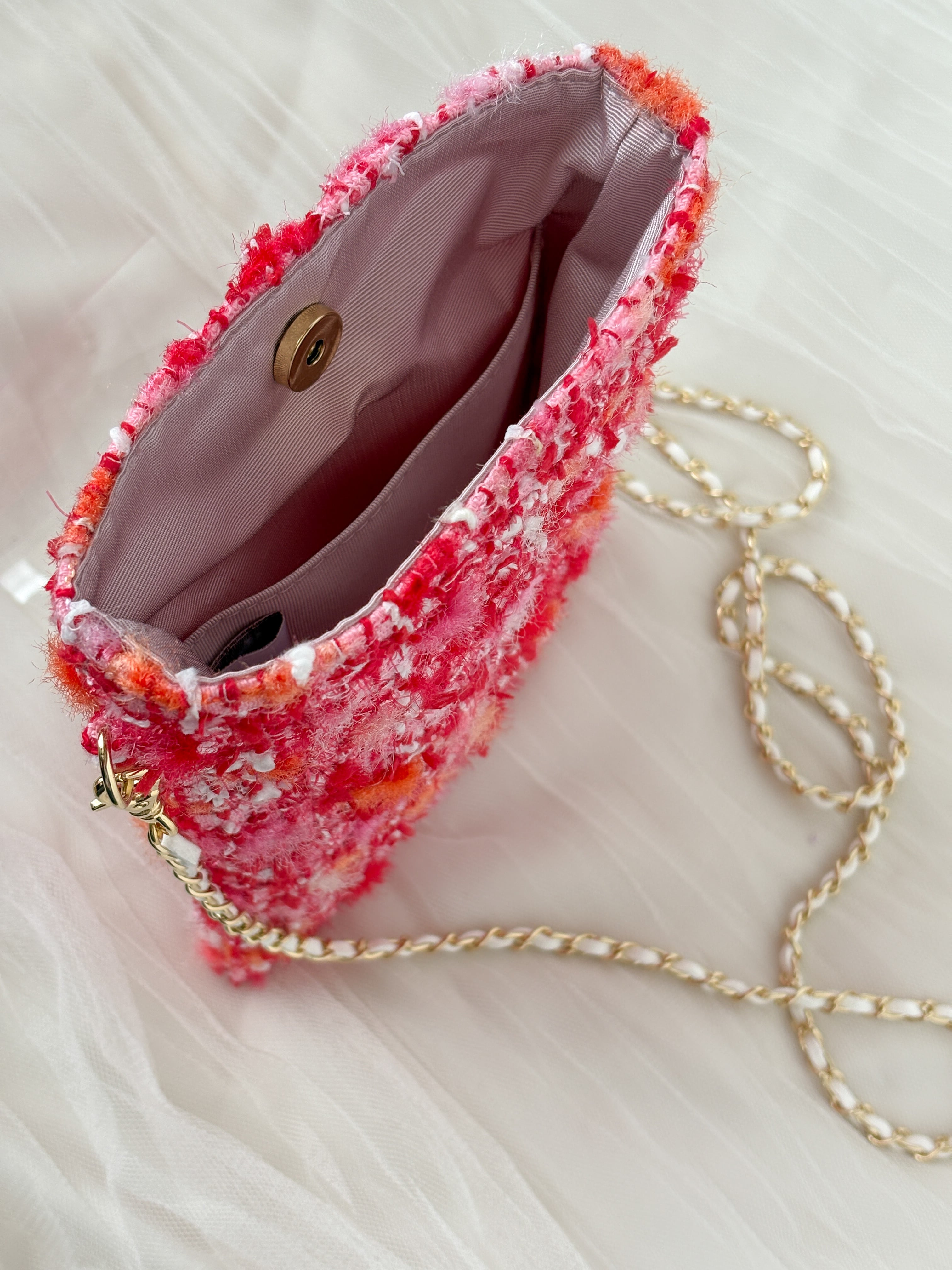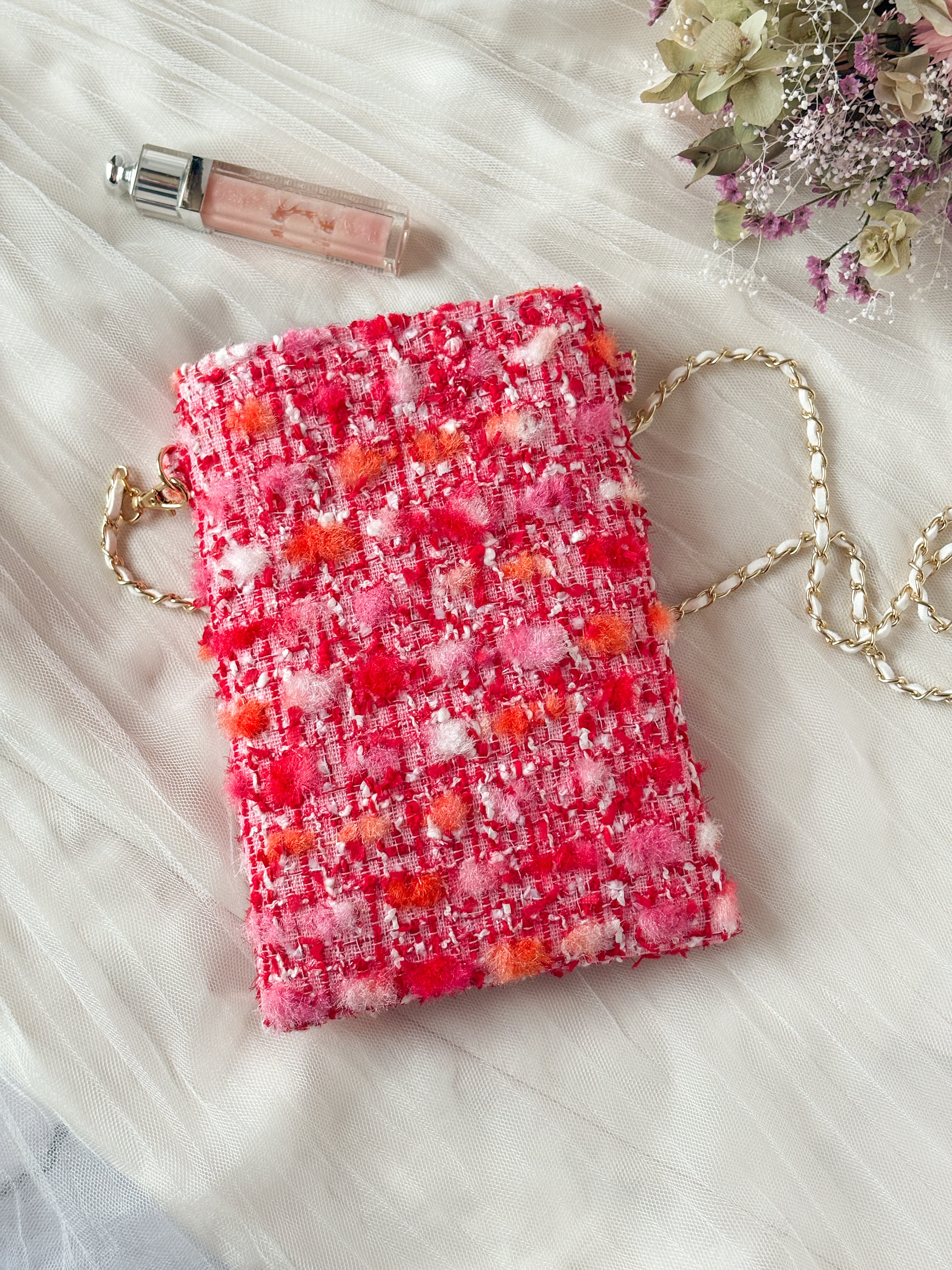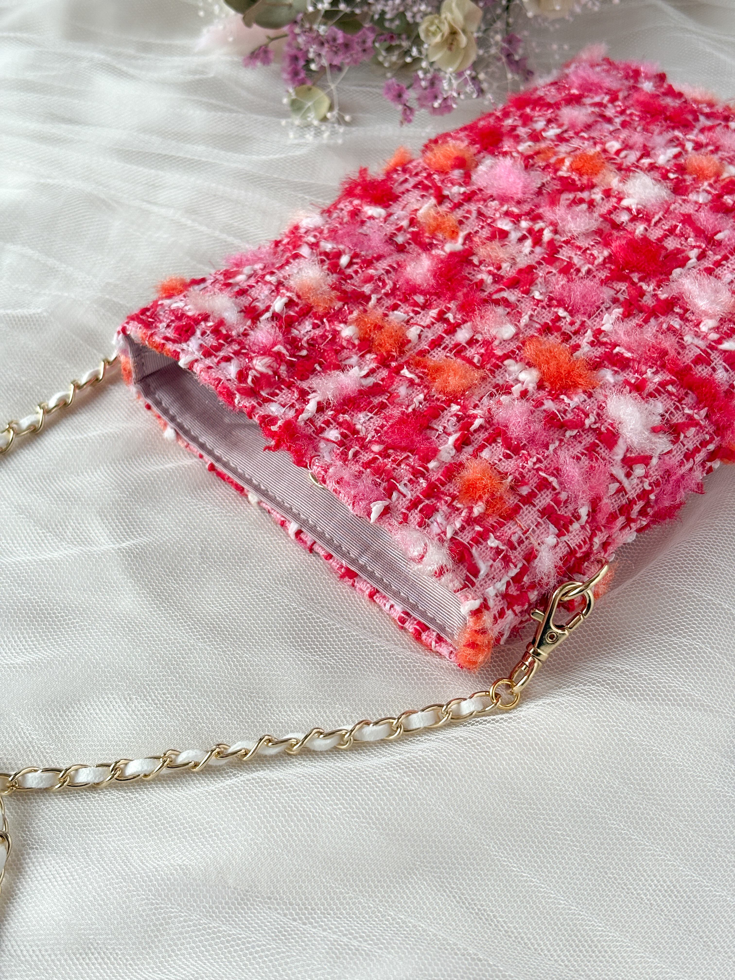 赤 スマホポシェット ミロスジュエリーツイード チェーン お出かけ プレゼント ご褒美に♡