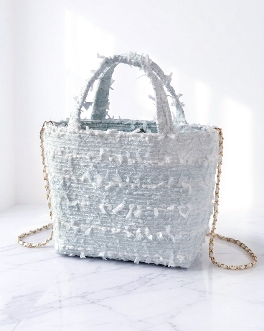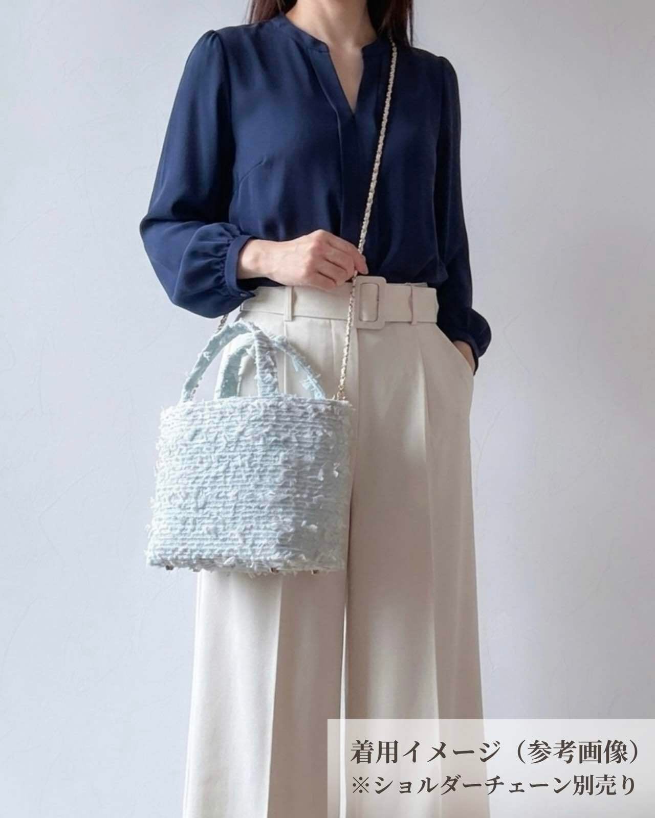 ペールブルーツイード ミニトート ショルダー対応 2way サマーツイード 底鋲付き お出掛け ご褒美