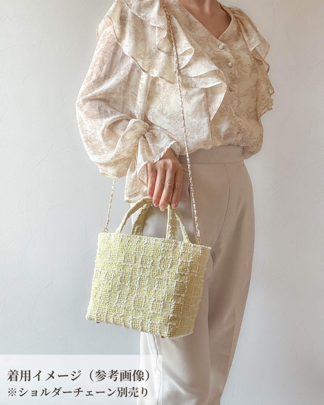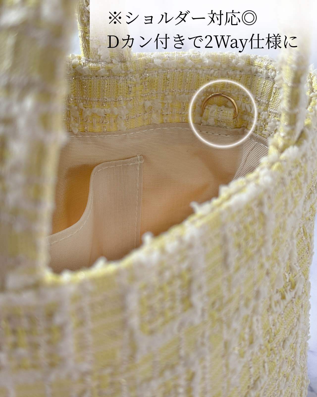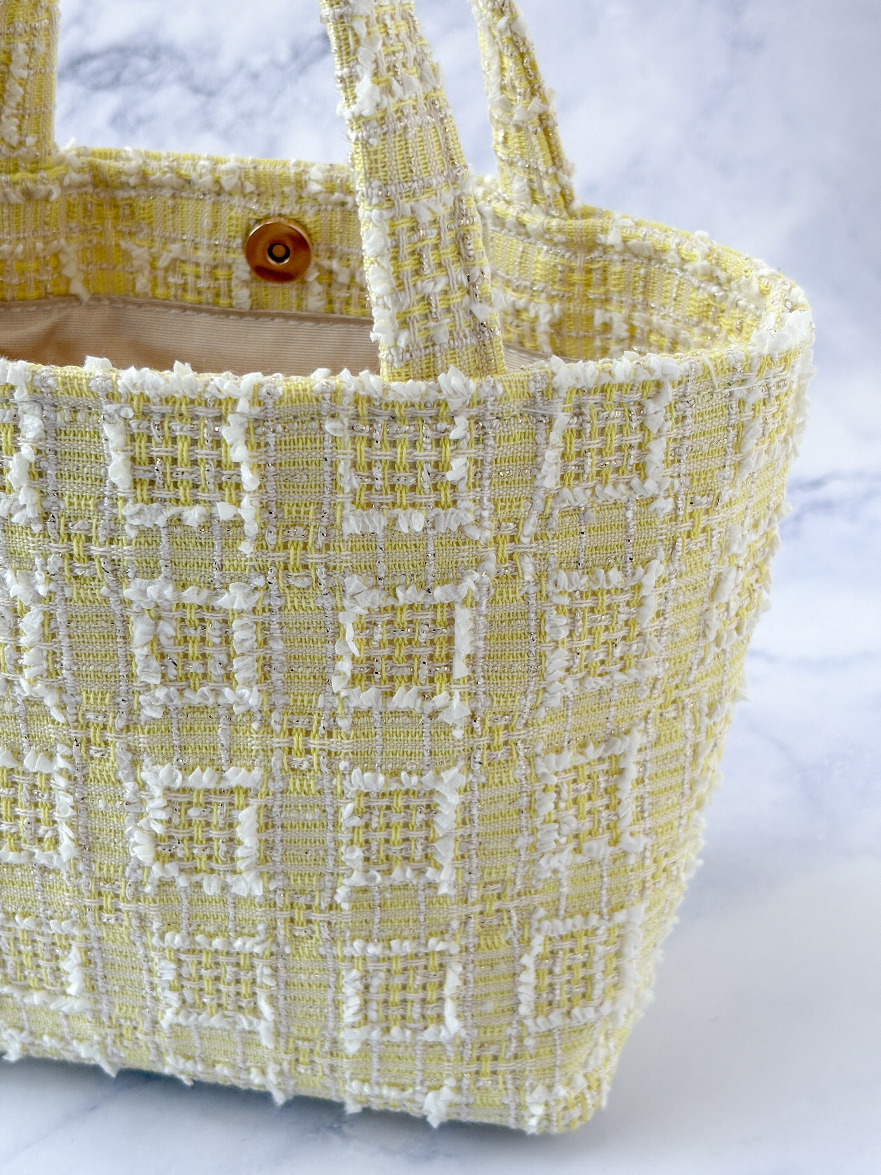 レモンイエロー ツイード ミニトート ショルダー対応 2way サマーツイード 底鋲付き お出掛け ご褒美