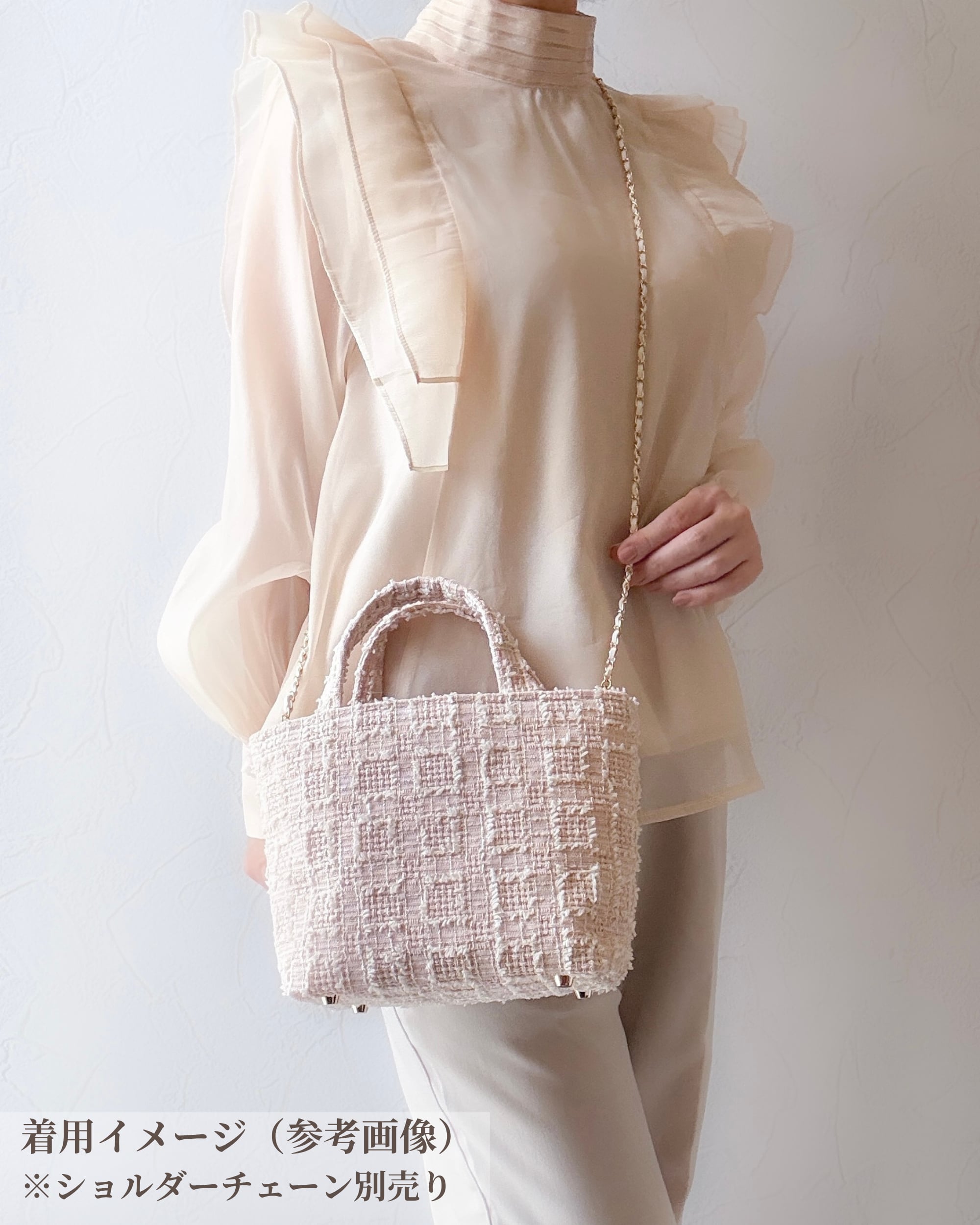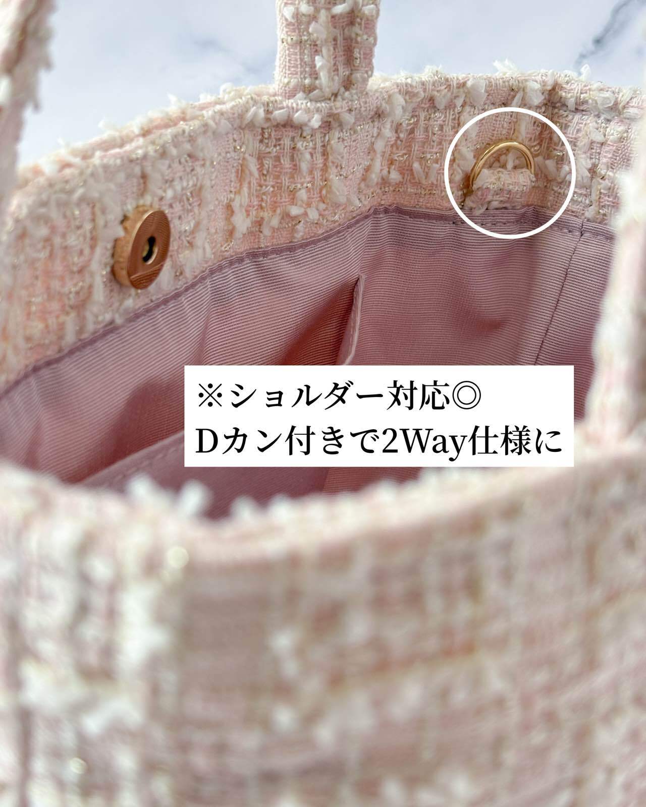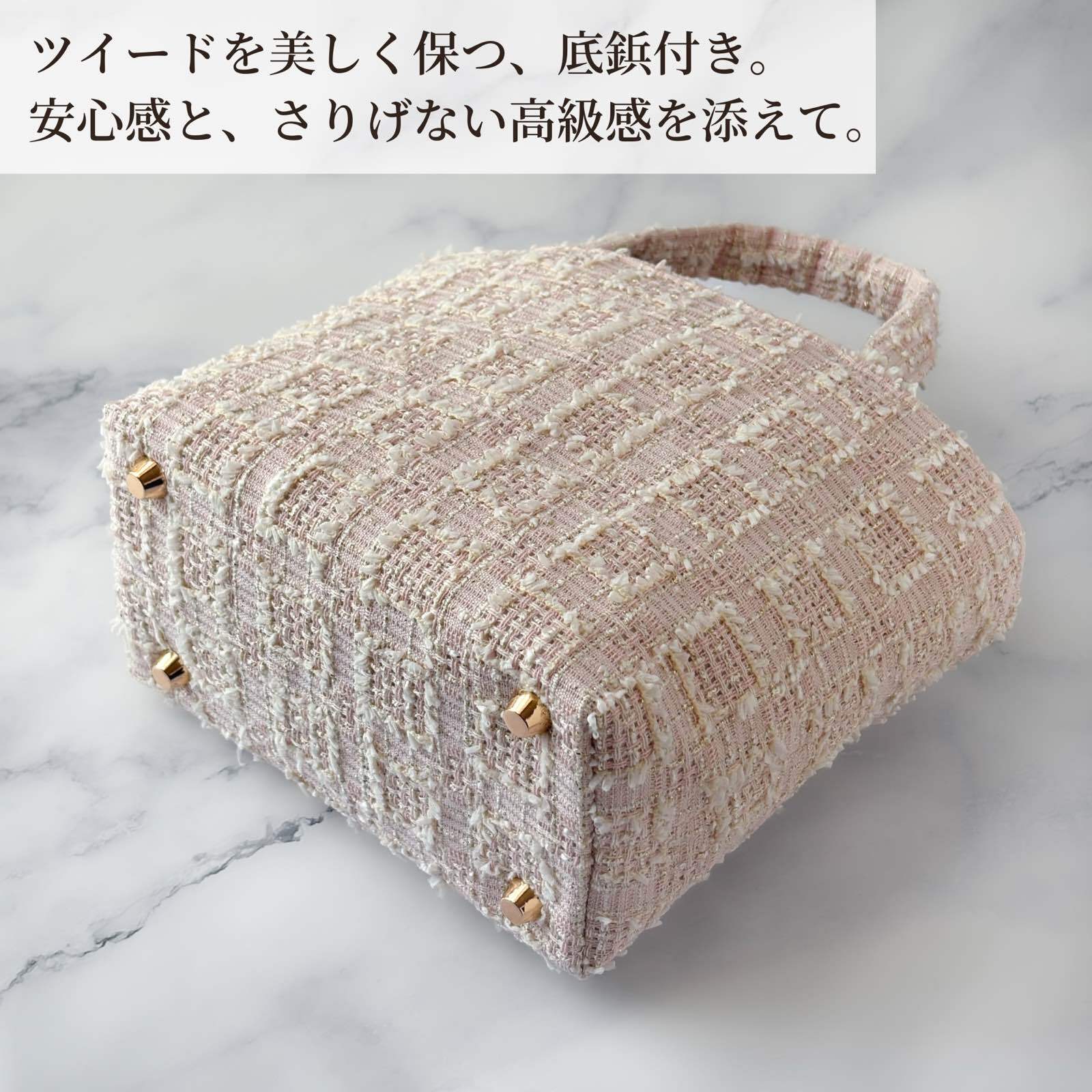 さくらピンク ツイード ミニトート ショルダー対応 2way ミロス ジュエリーツイード底鋲付き お出掛け ご褒美