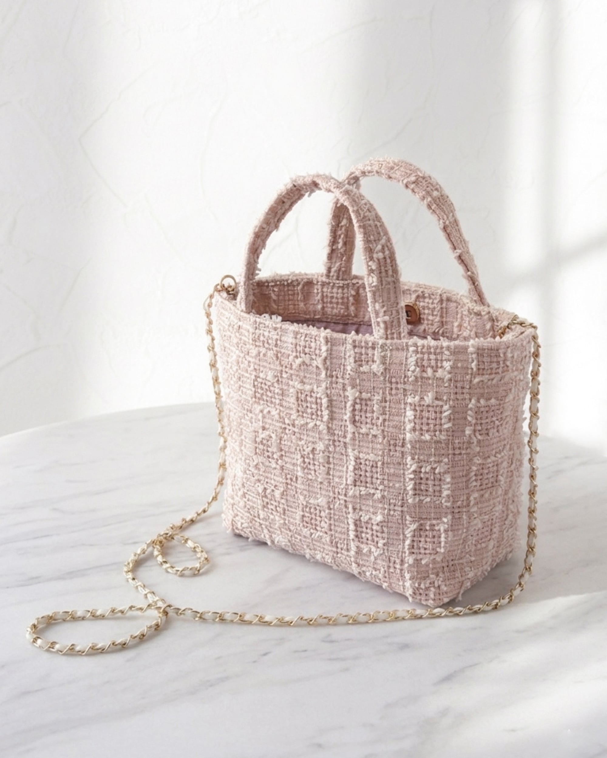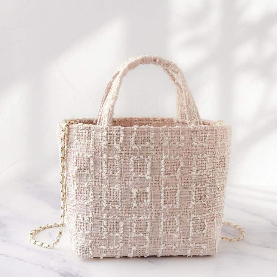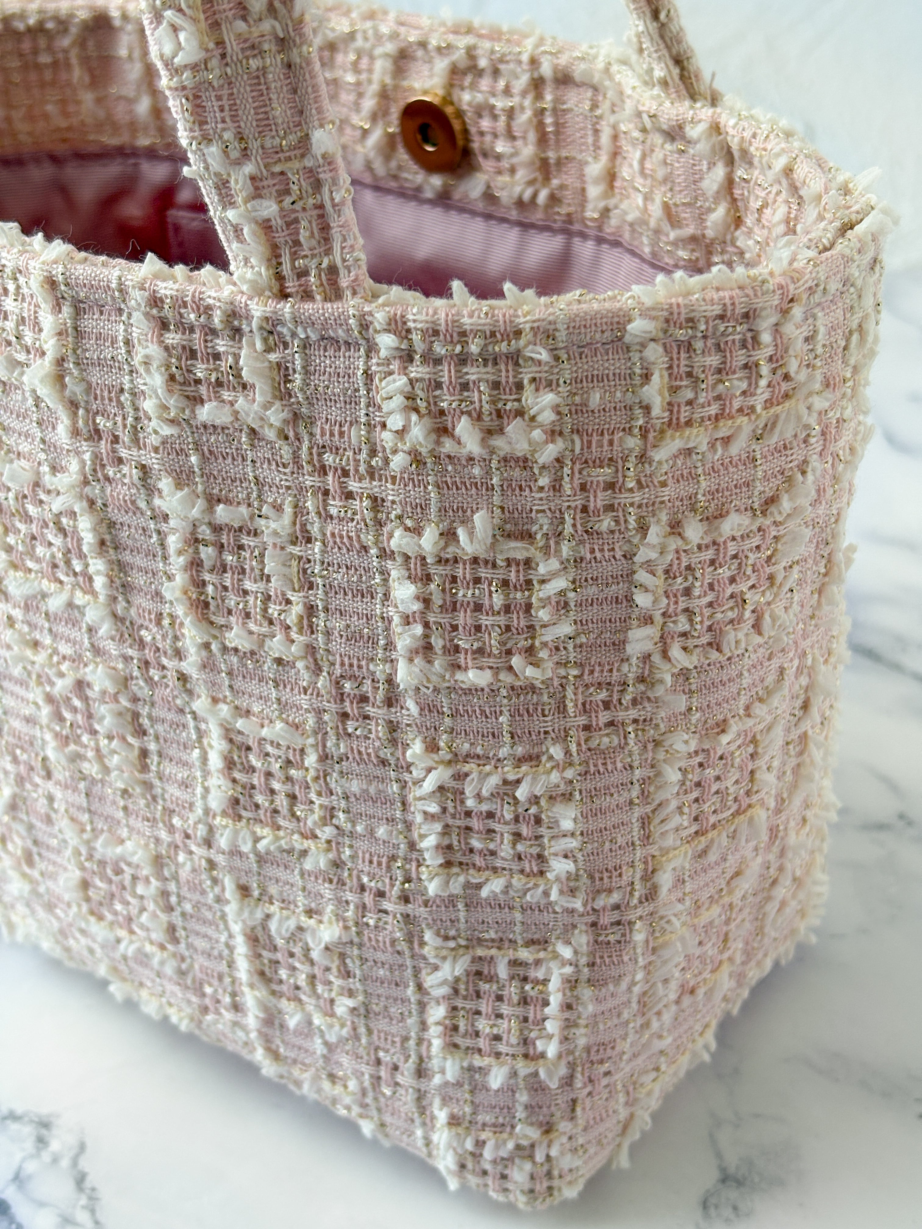 さくらピンク ツイード ミニトート ショルダー対応 2way ミロス ジュエリーツイード底鋲付き お出掛け ご褒美