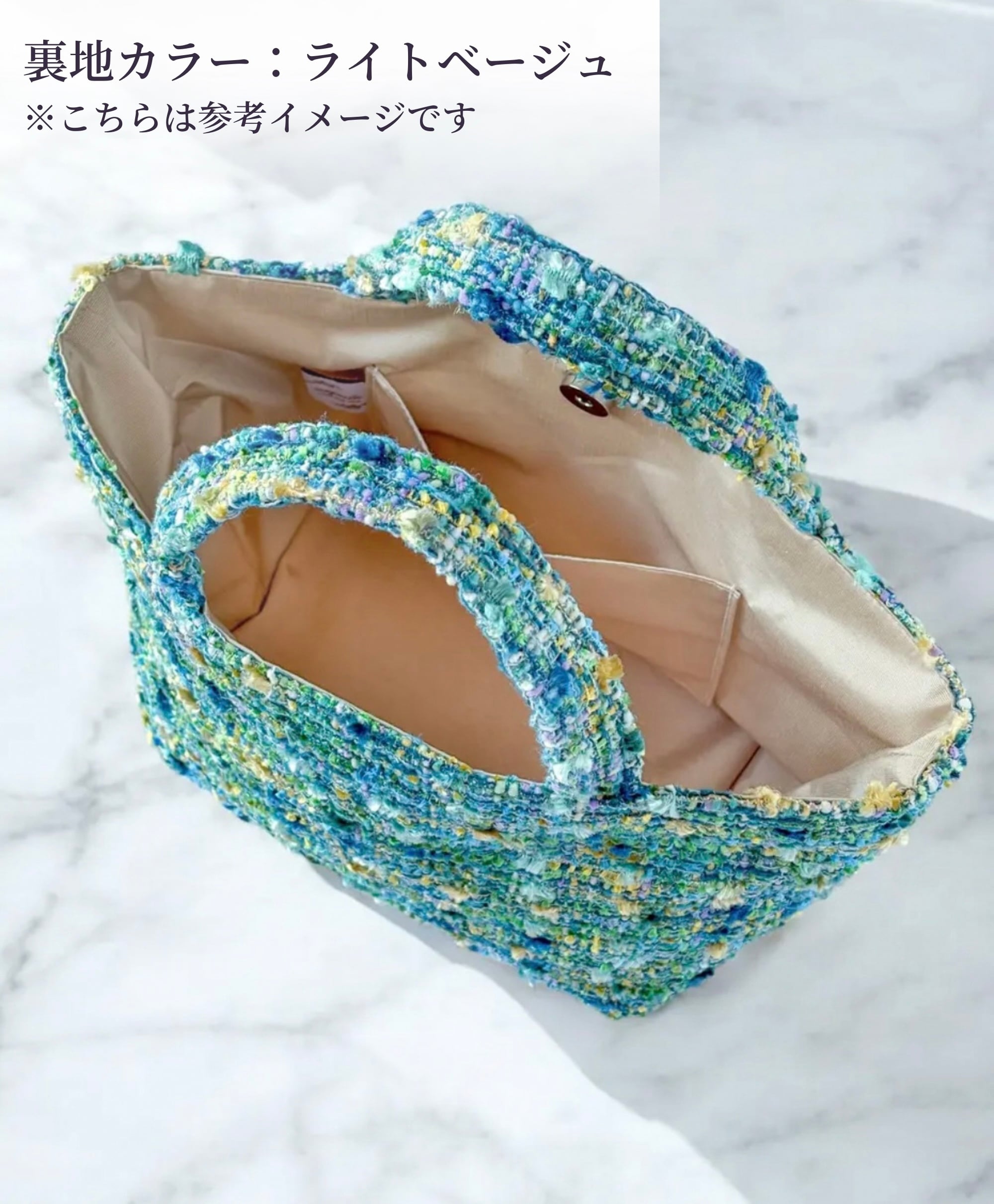 〈ウォーターリリー〉ブルーグリーン マチ広めトートバッグ サマーツイード 底鋲付き プレゼント ご褒美に♡